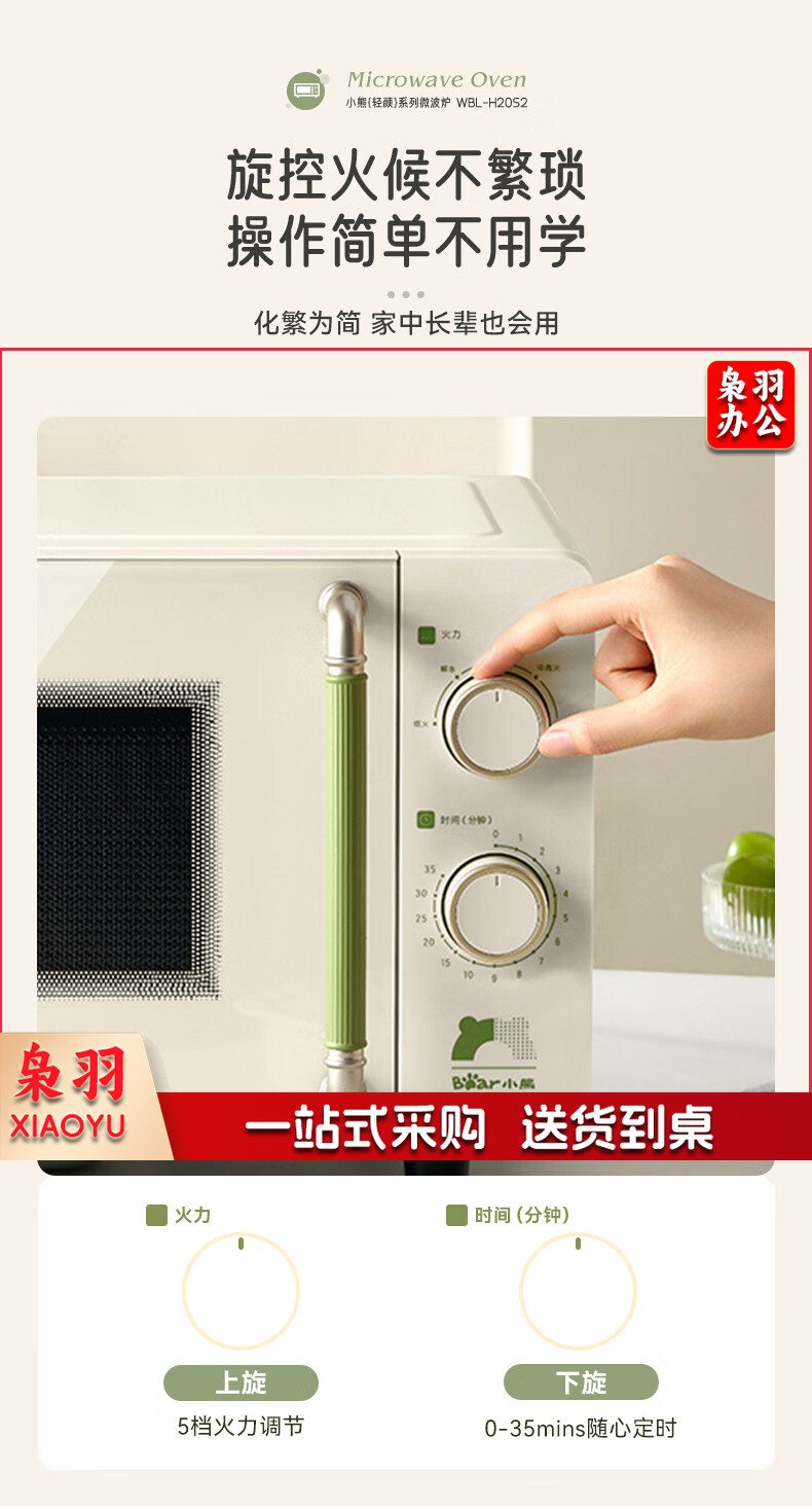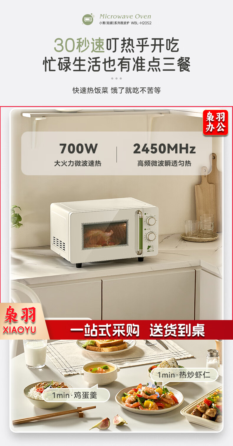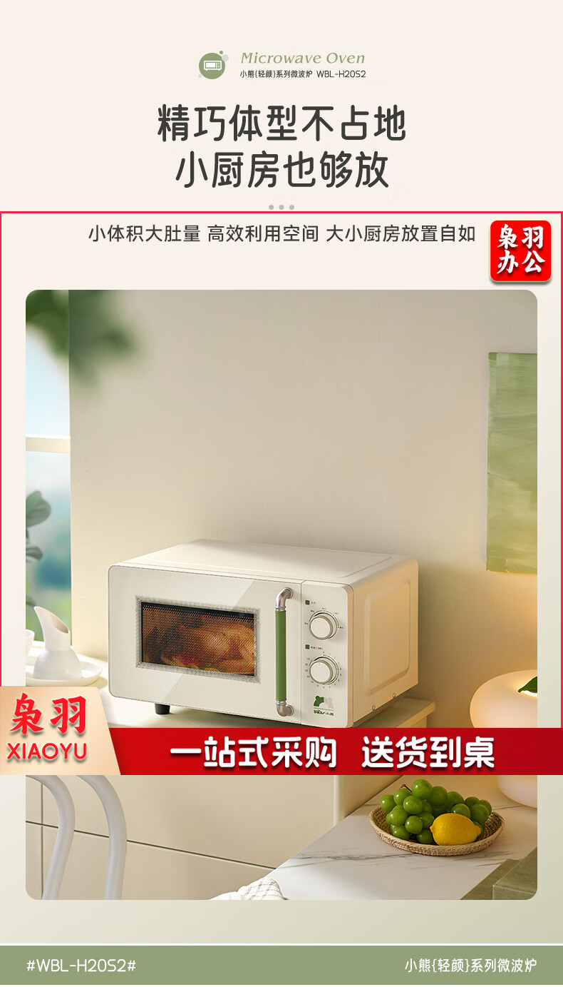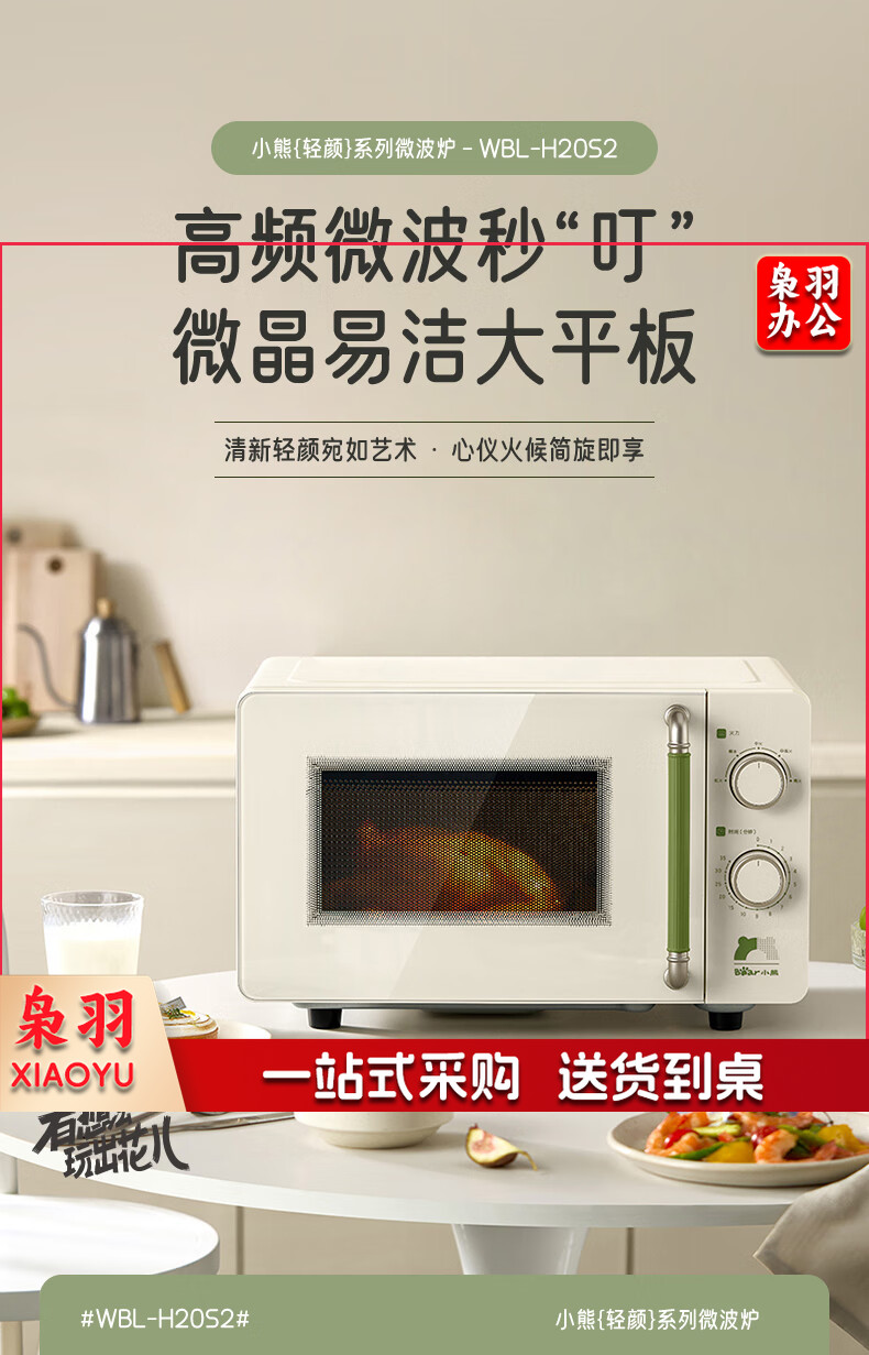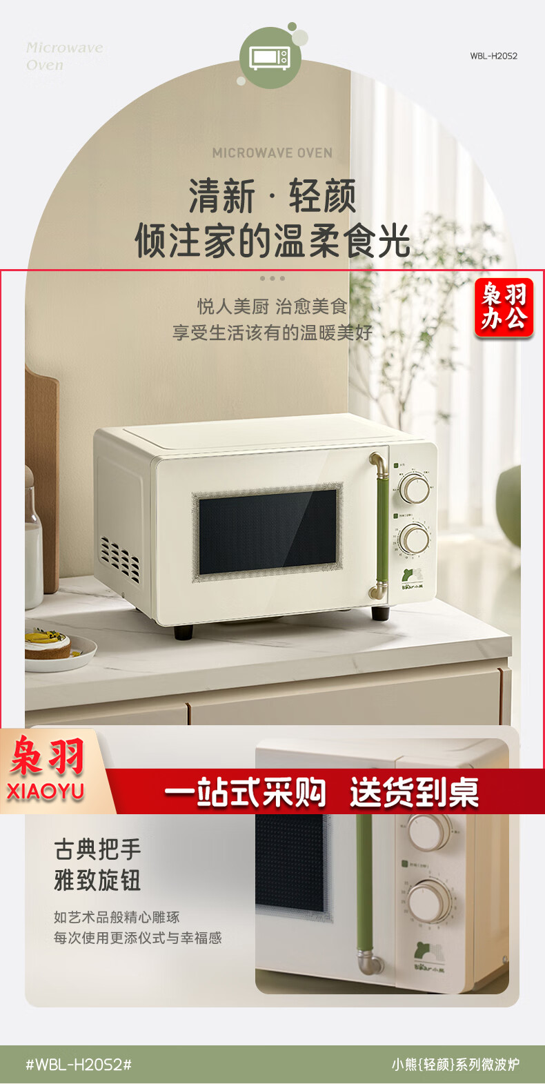 小熊(Bear)轻颜微波炉烤箱一体机 小型家用复古旋钮智能平板加热多功能高频五档火力调控WBL-H20S2