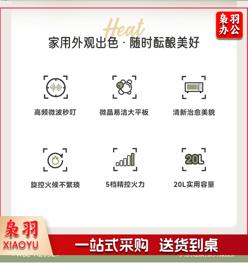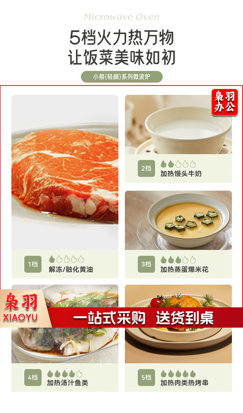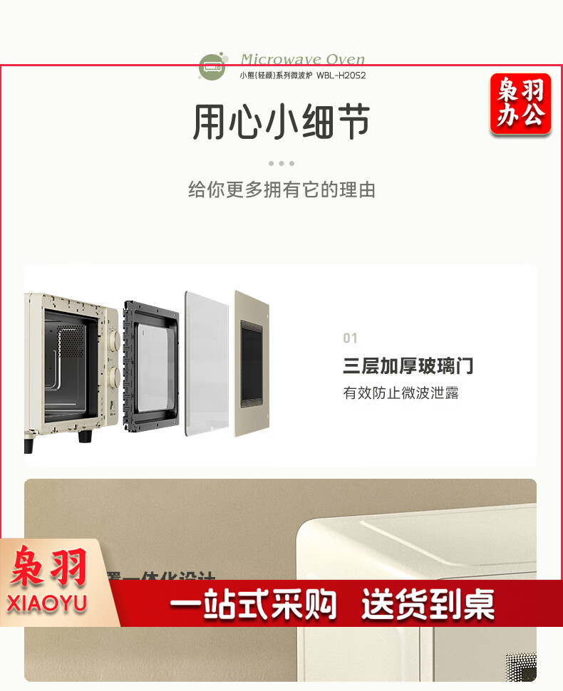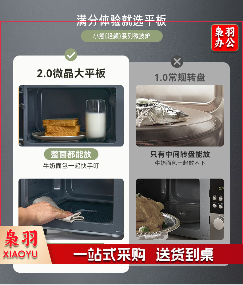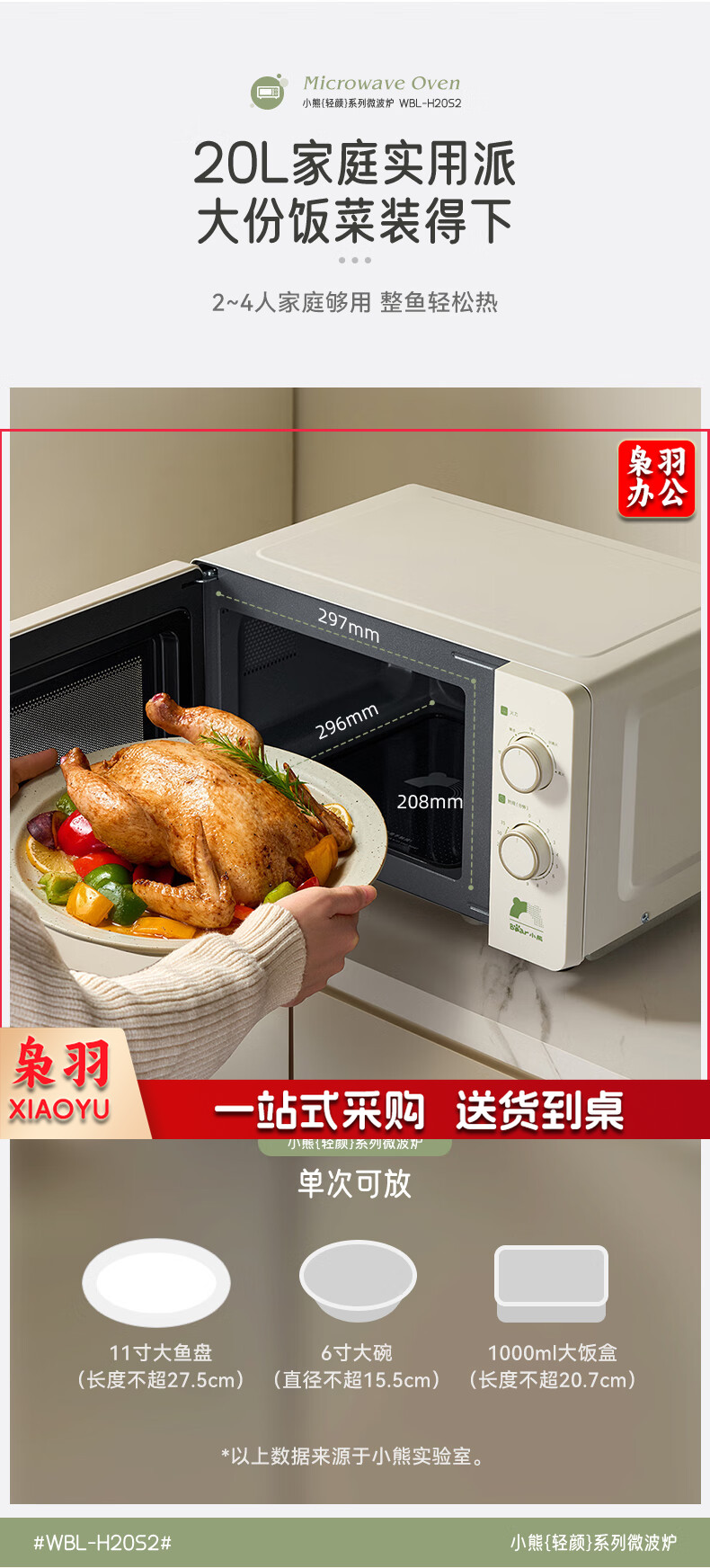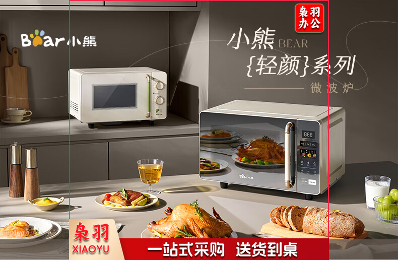 小熊(Bear)轻颜微波炉烤箱一体机 小型家用复古旋钮智能平板加热多功能高频五档火力调控WBL-H20S2