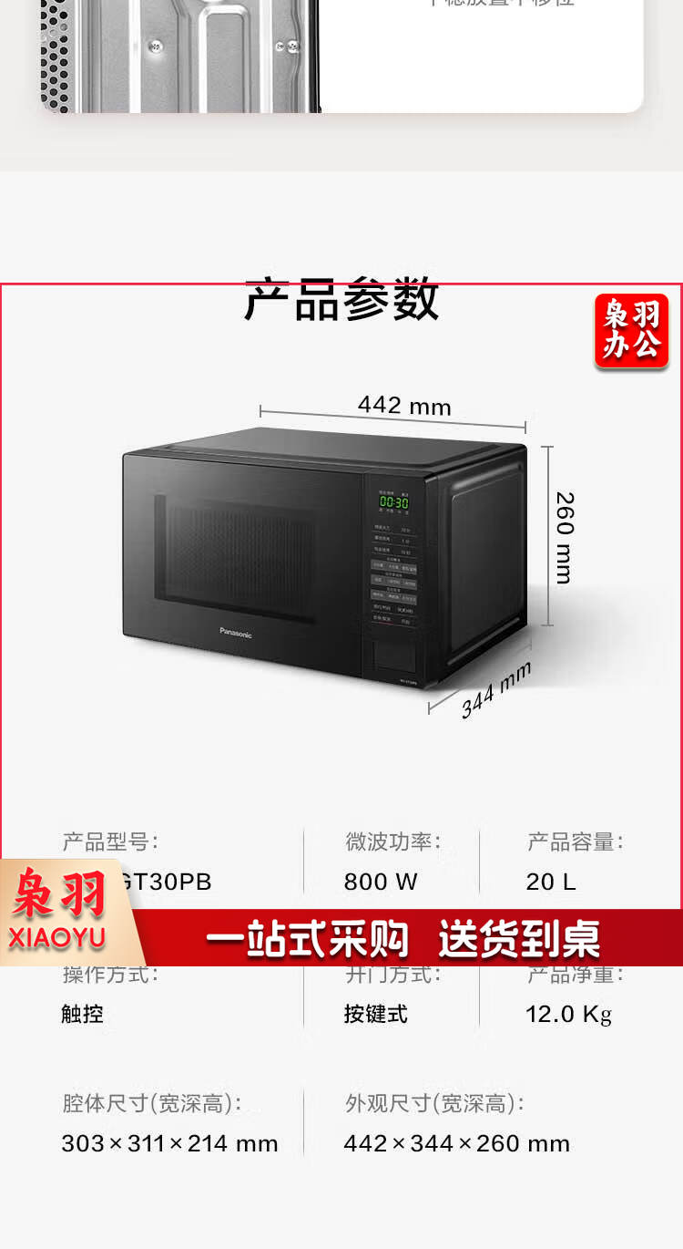 松下(Panasonic)NN-GT30PB 20L家用容量微波炉 微烤一体机 童锁模式更安心 支持以旧换新