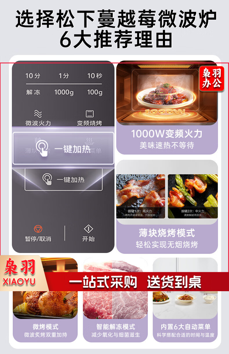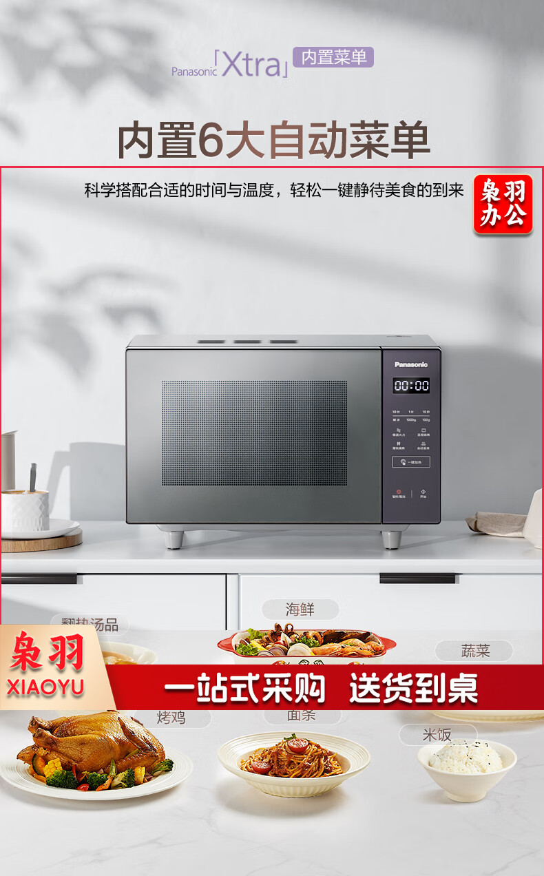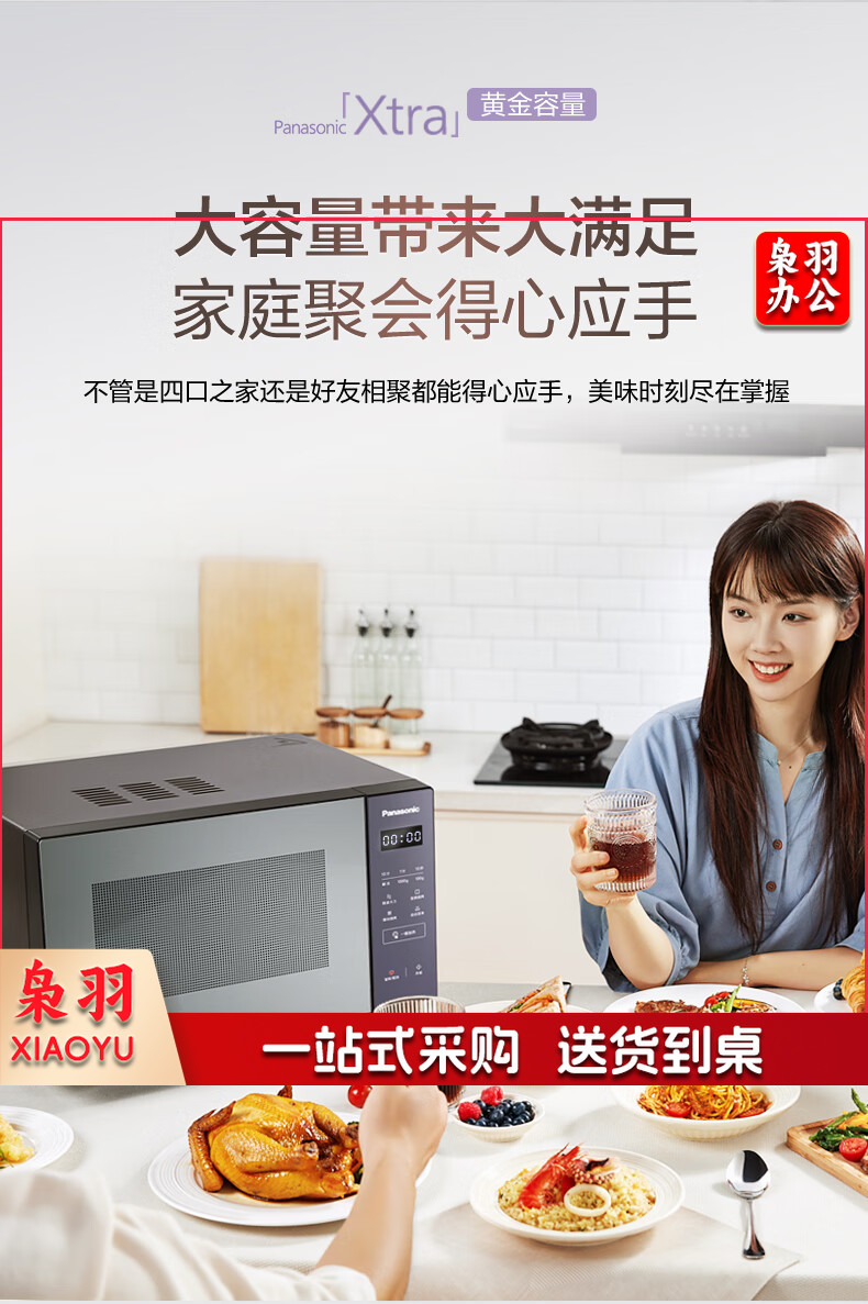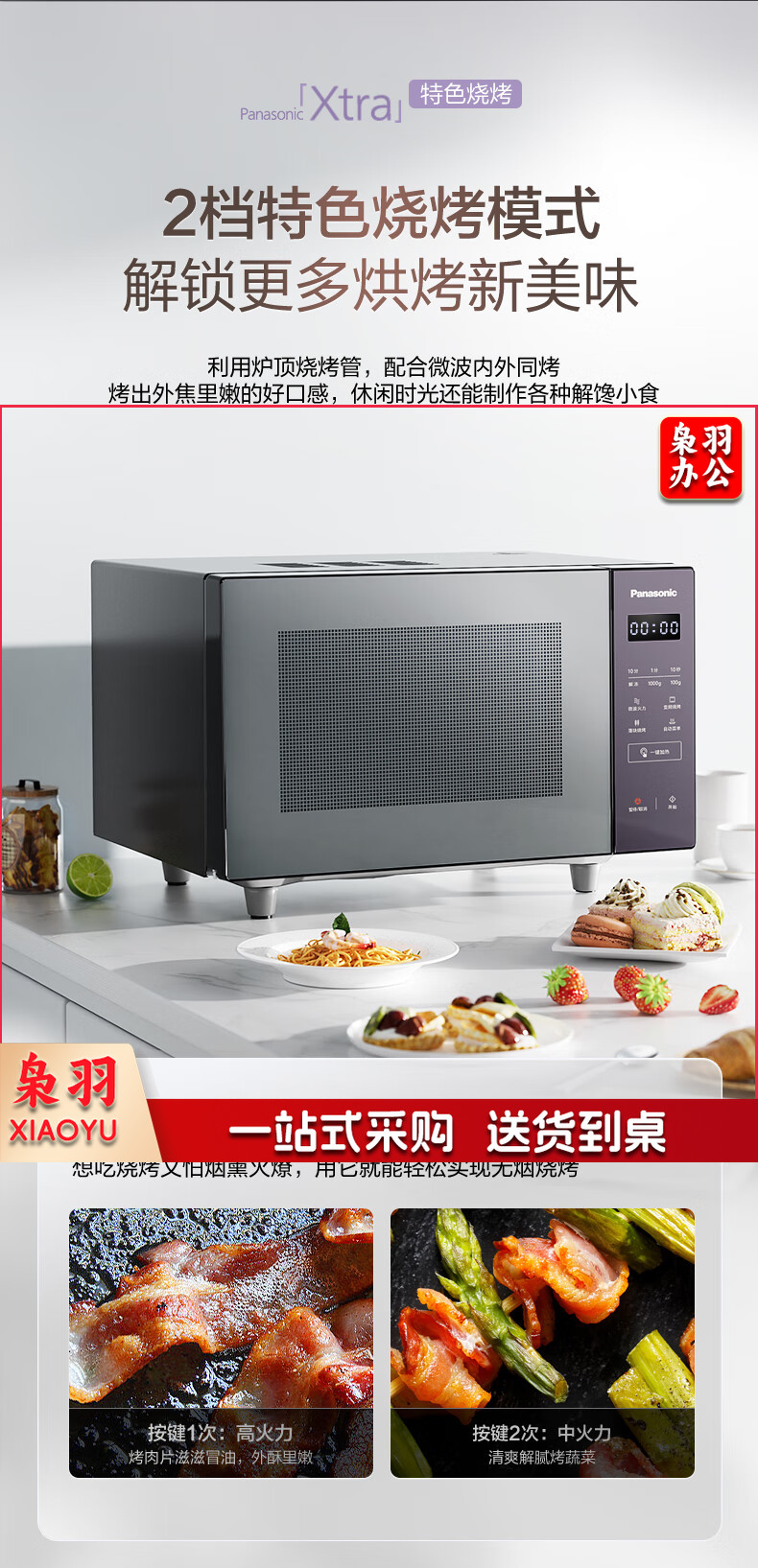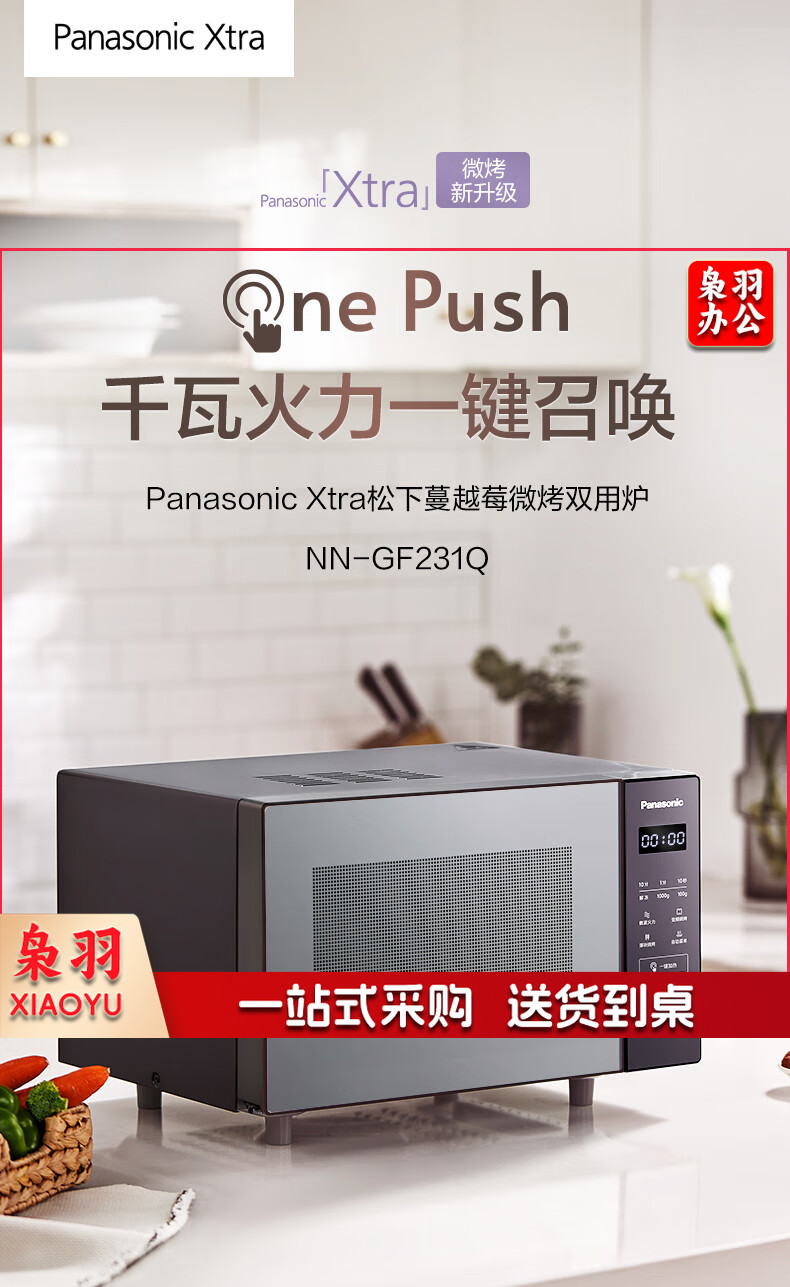 松下(Panasonic)Xtra蔓越莓微波炉烤箱一体机 家用多功能平板式电烤箱 一键感温加热6档变频火力 22升大容量GF231Q