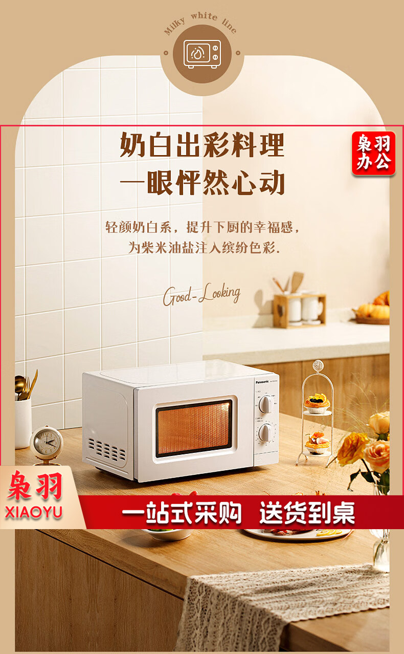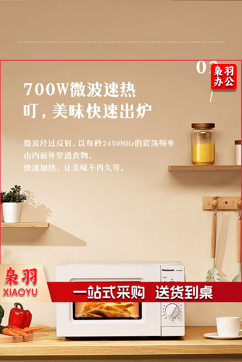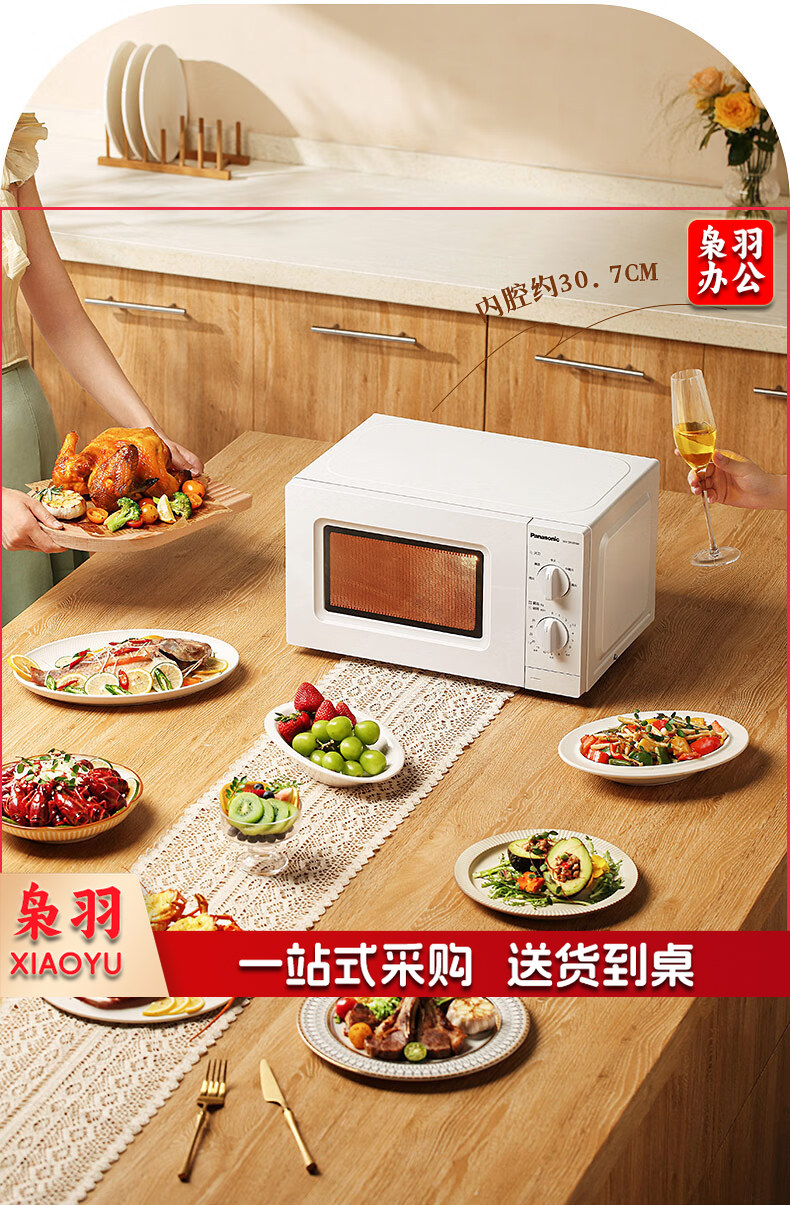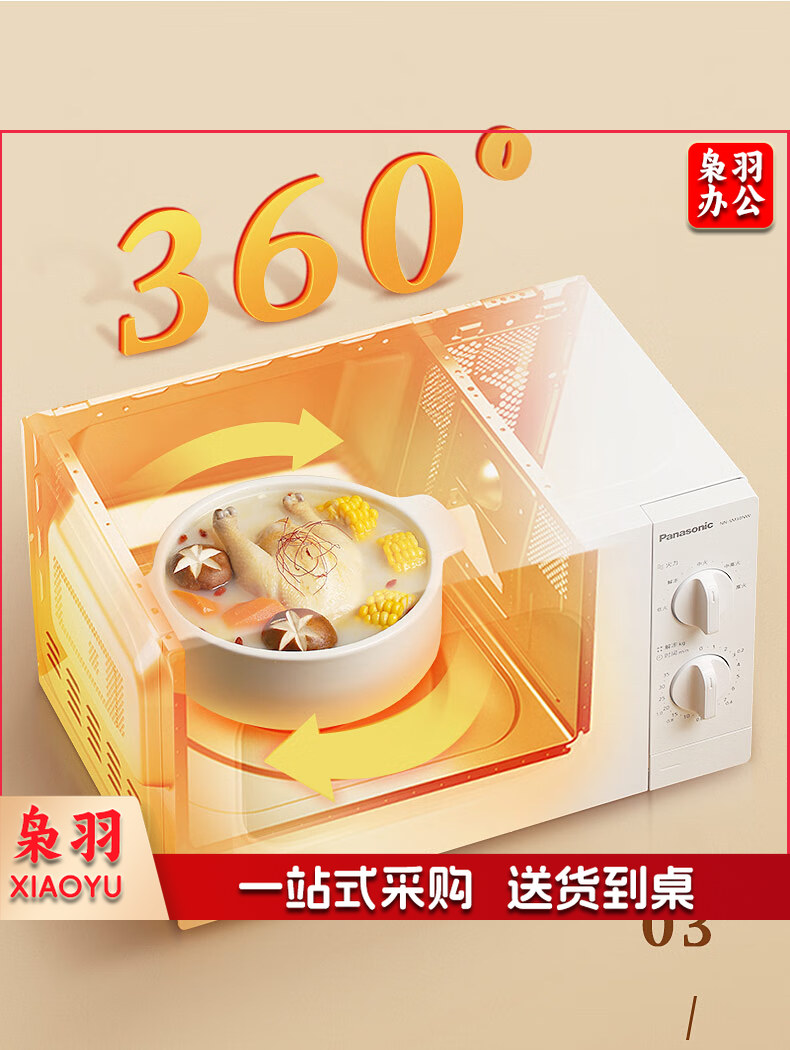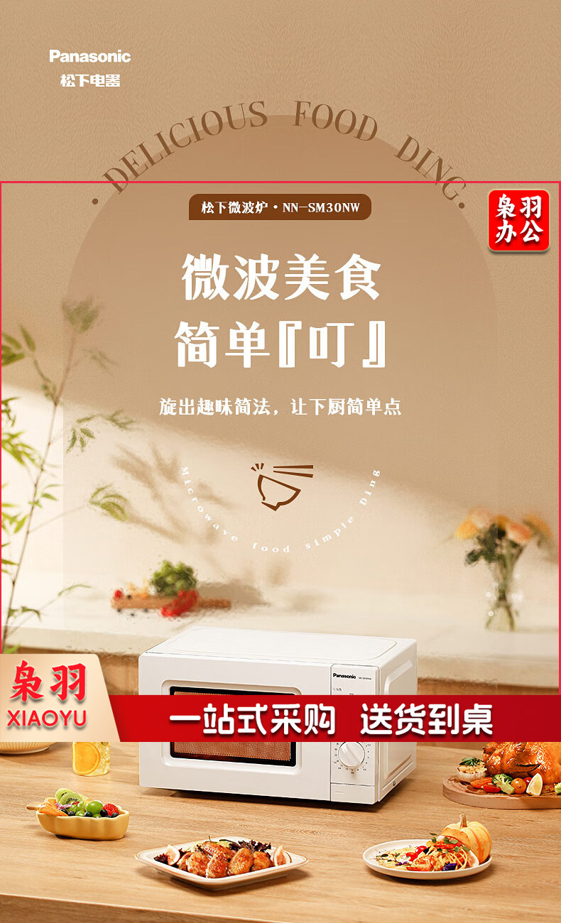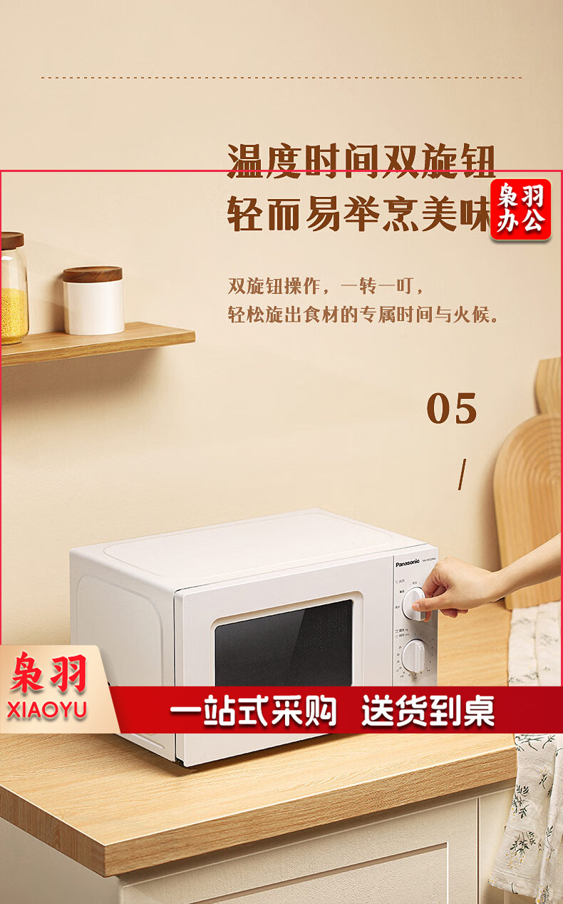 松下(Panasonic)NN-SM30NW 20升家用微波炉 360°转盘式加热 五档火力精准控温 旋钮操作化繁为简