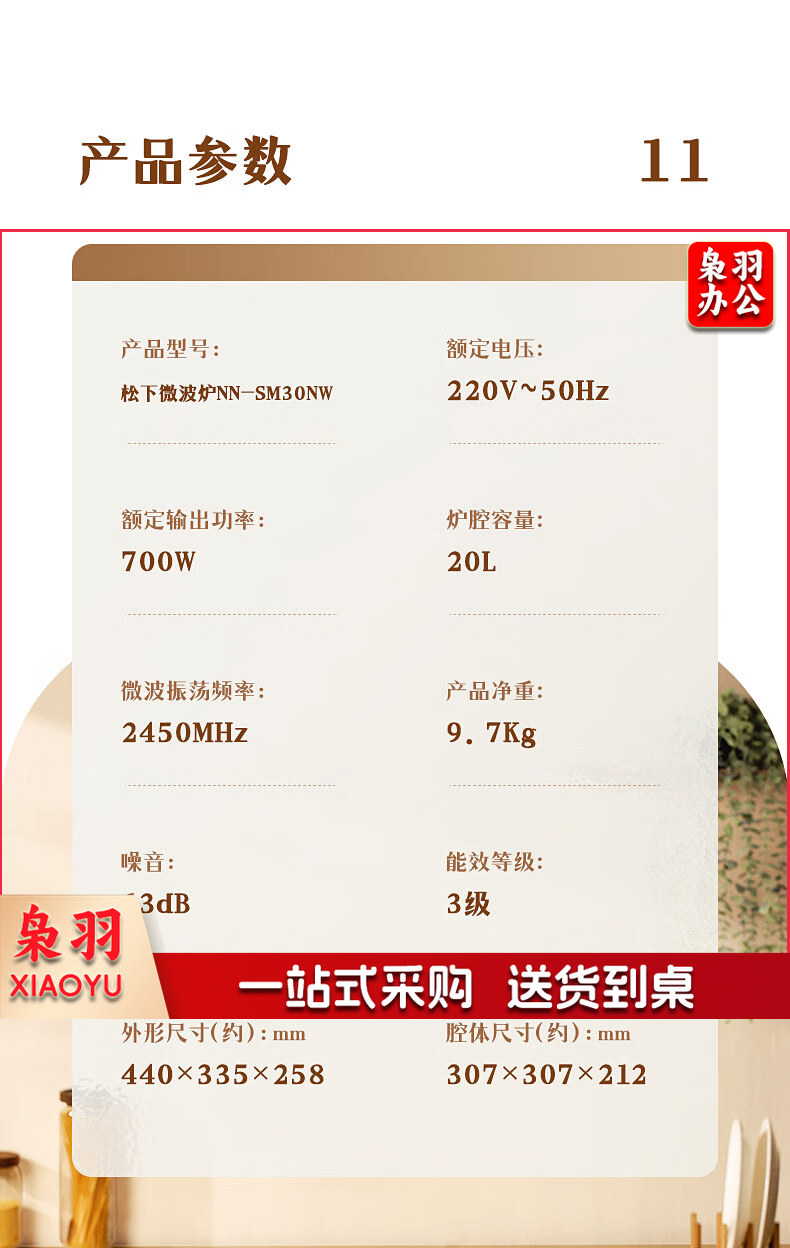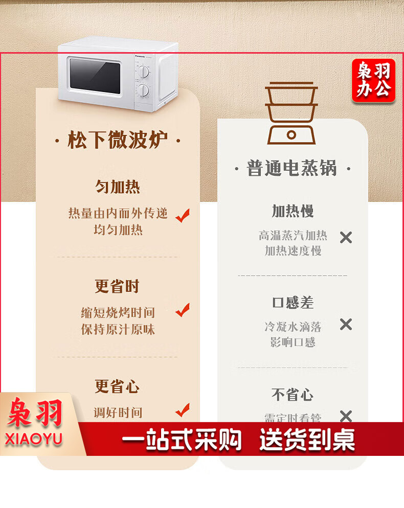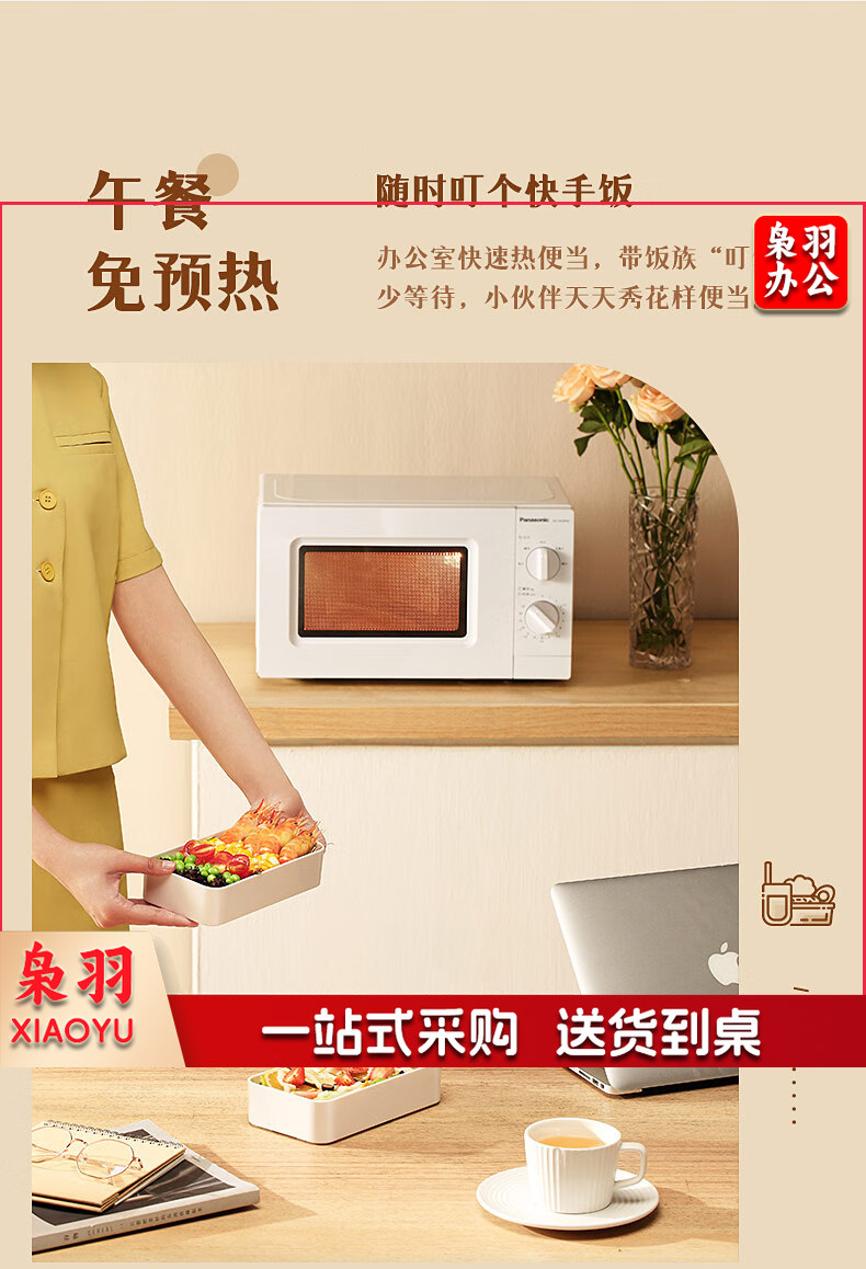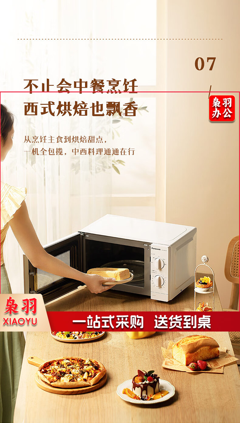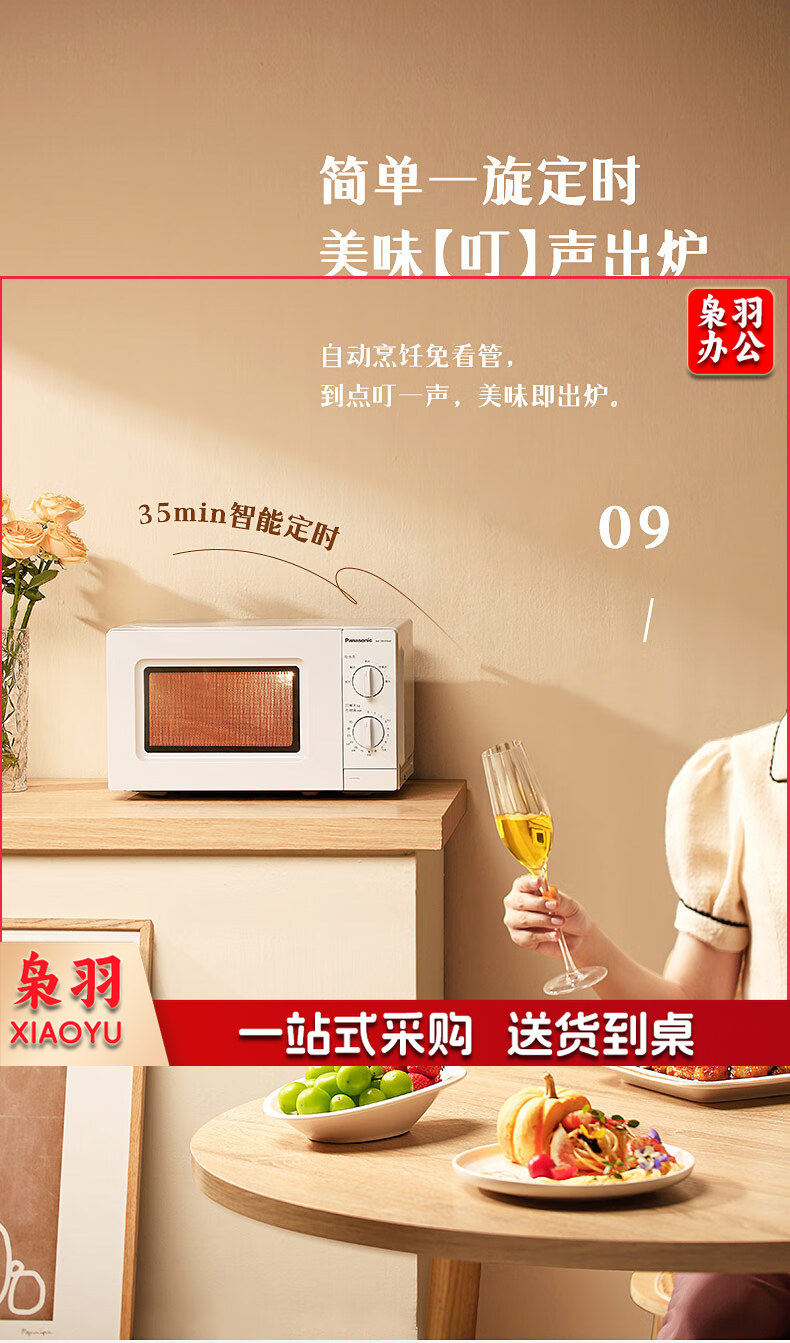 松下(Panasonic)NN-SM30NW 20升家用微波炉 360°转盘式加热 五档火力精准控温 旋钮操作化繁为简