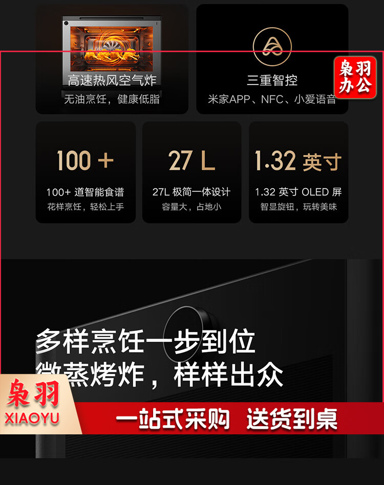 米家小米智能变频微蒸烤一体机 微波炉电烤箱电蒸箱空气炸四合一 专业烘烤 不锈钢内胆 台式大容量27升