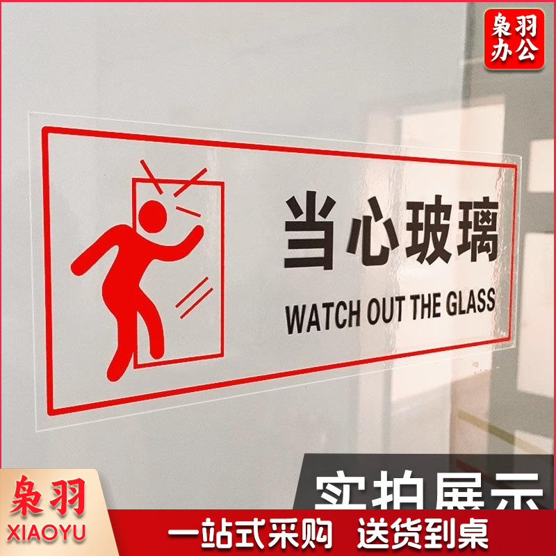 请随手关门【25x10cm】小心玻璃提示禁止吸烟透明贴纸小心地滑禁止倚靠禁止翻越商场提示