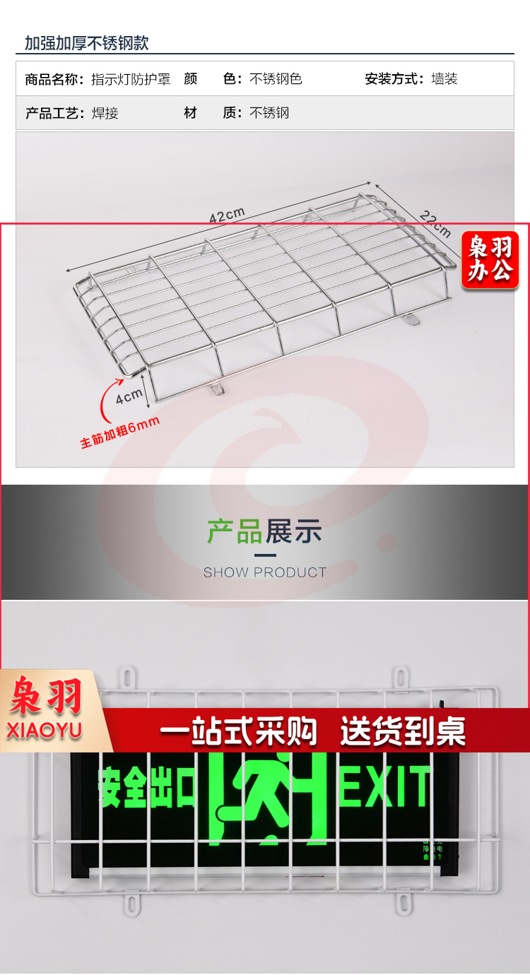 安全出口保护罩 加固型通用42cm*22cm*6cm 应急灯疏散指示牌防护网 指示灯网罩