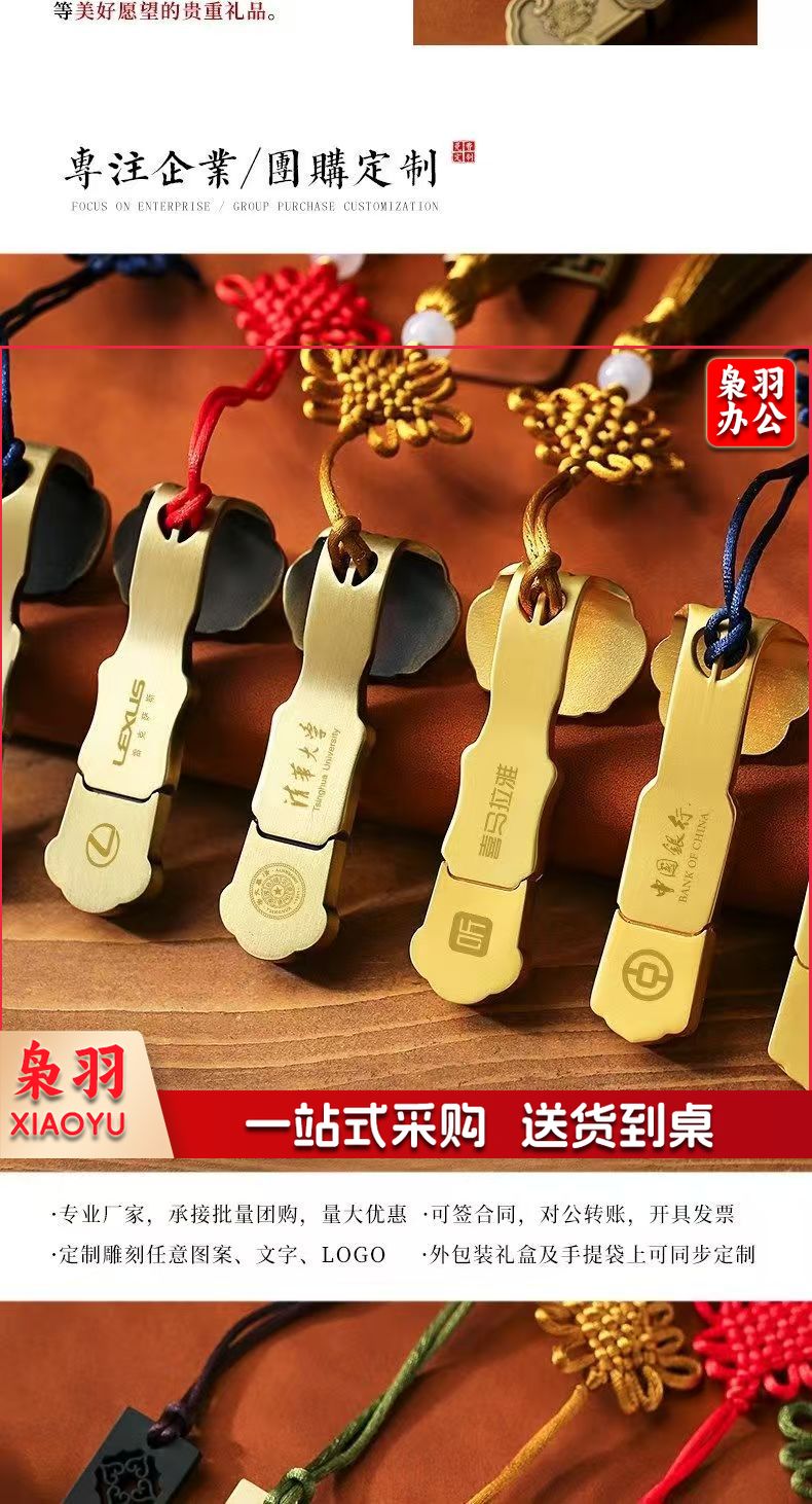 128GB U盘 中国风U盘64g企业学校纪念个性礼品如意四叶草大容量定制金属u盘128-2.0-10MB/S(可定制)