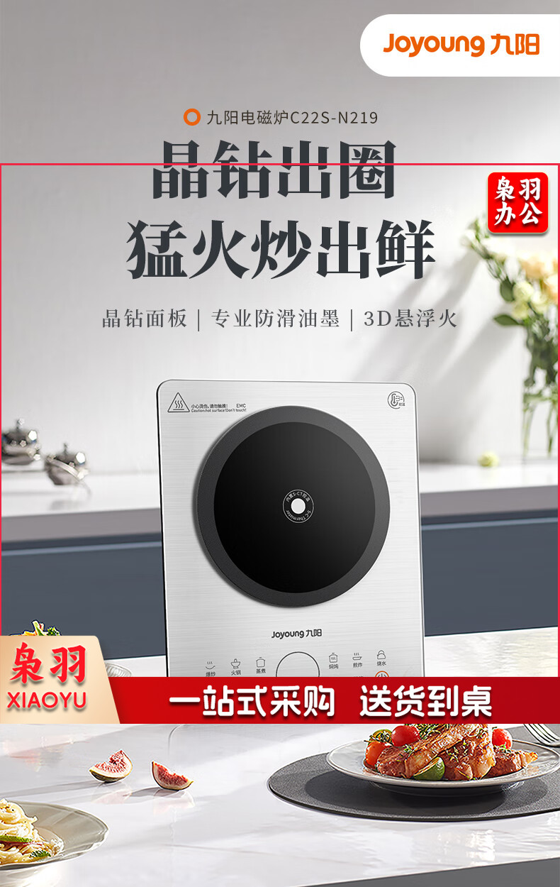 九阳(Joyoung)电磁炉电陶炉2200W大功率电磁灶火锅炉一体微晶面板一键爆炒炒菜智能预约家用电磁炉C22S-N219-A4