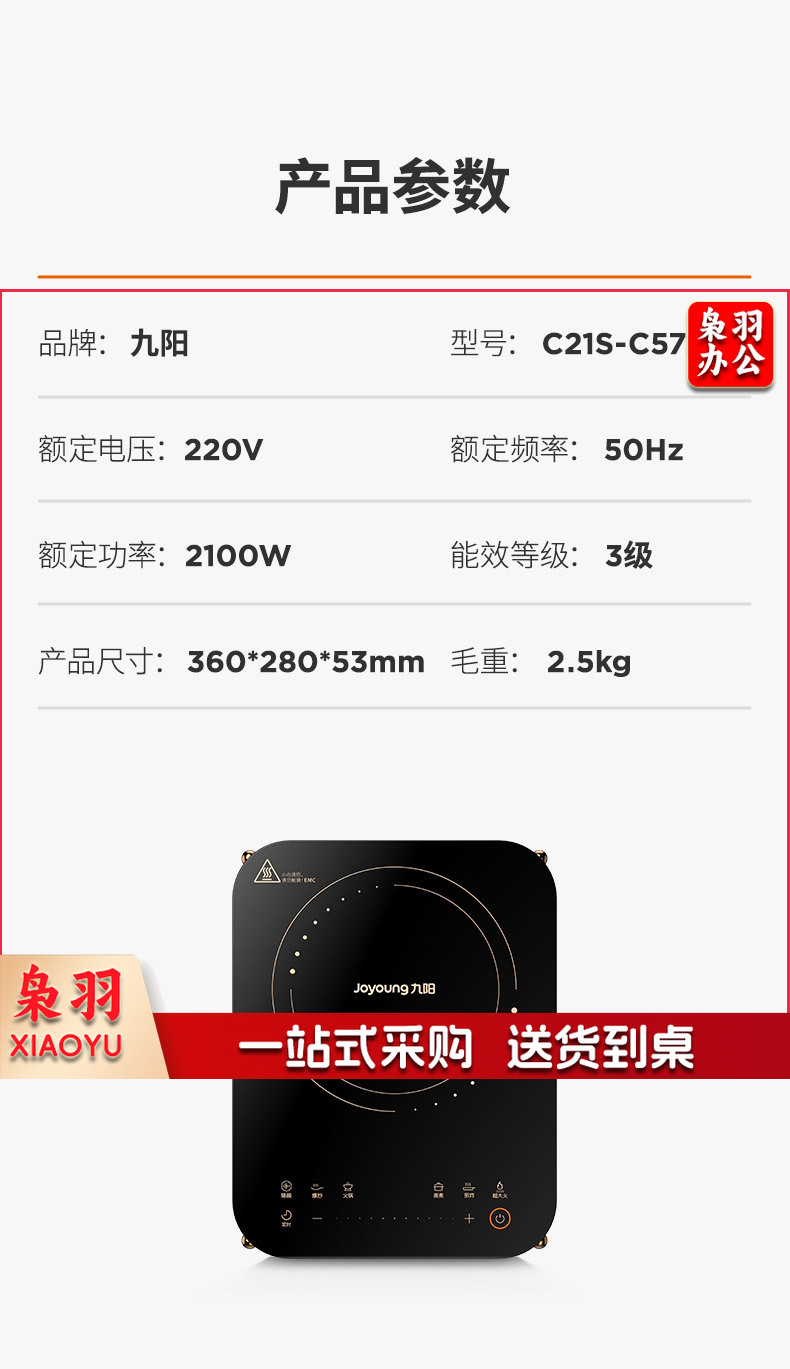 九阳(Joyoung)电磁炉电陶炉家用电磁灶电池炉2100W一键爆炒定时功能防水高颜值防辐C21S-C572