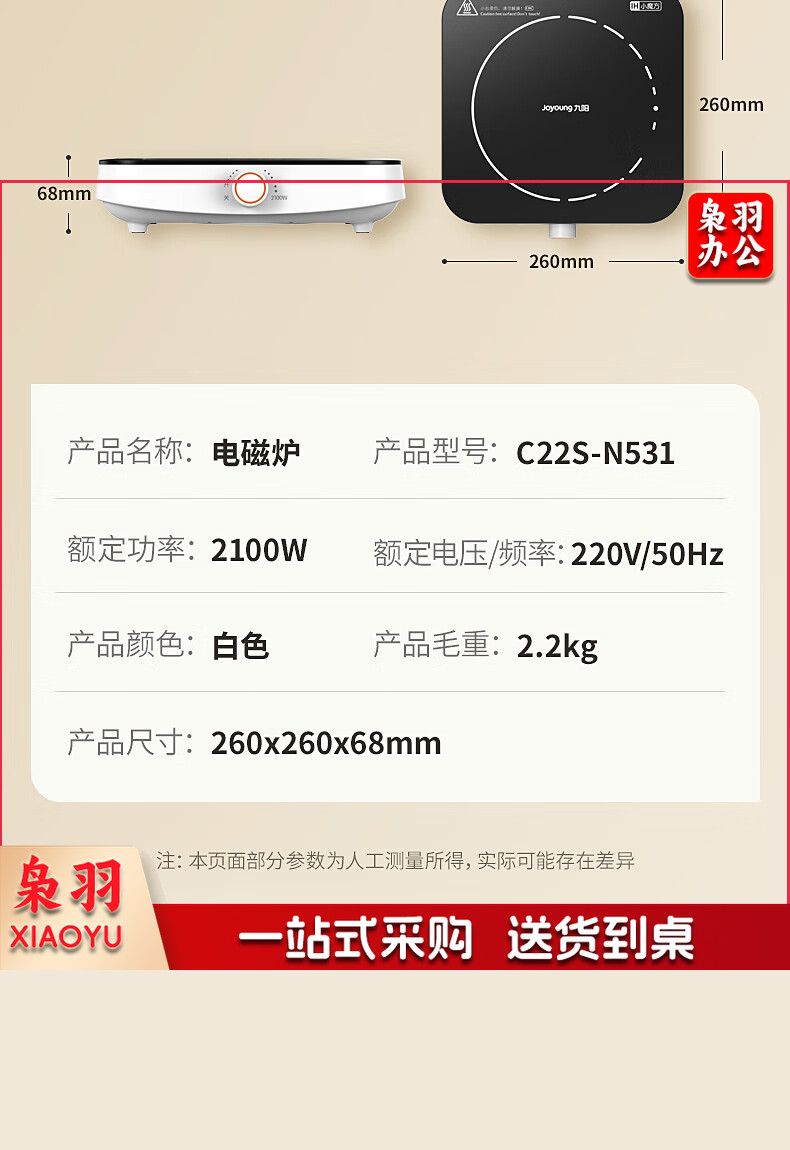 九阳(Joyoung)电磁炉电陶炉迷你家用电磁灶电磁炉旋钮控制2100W一体小型火锅炉C22S-N531单机版
