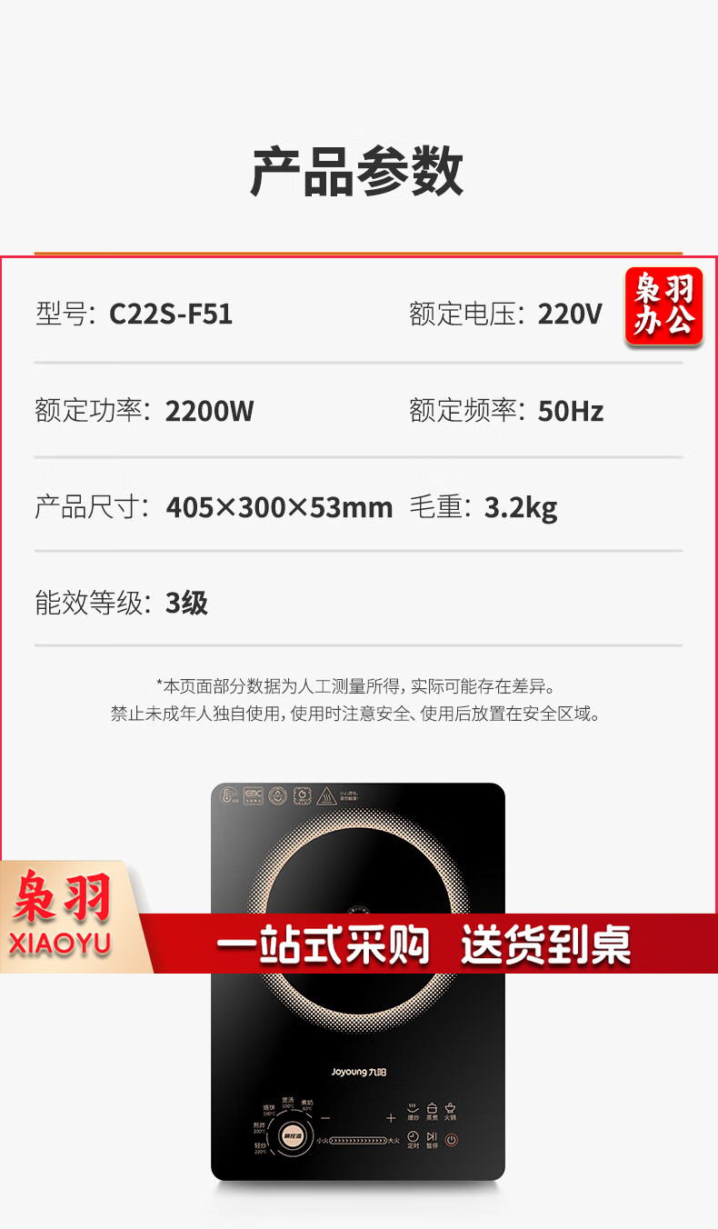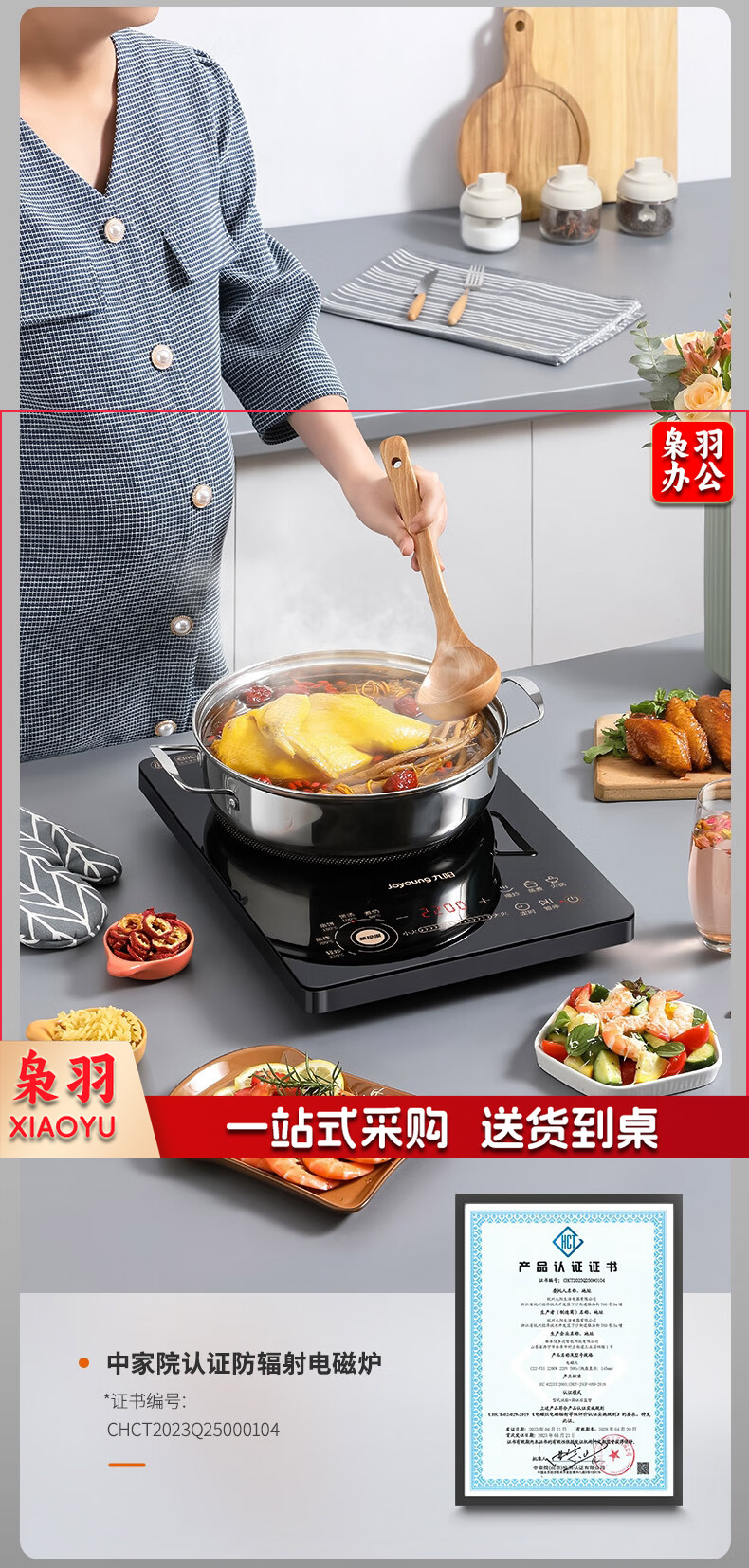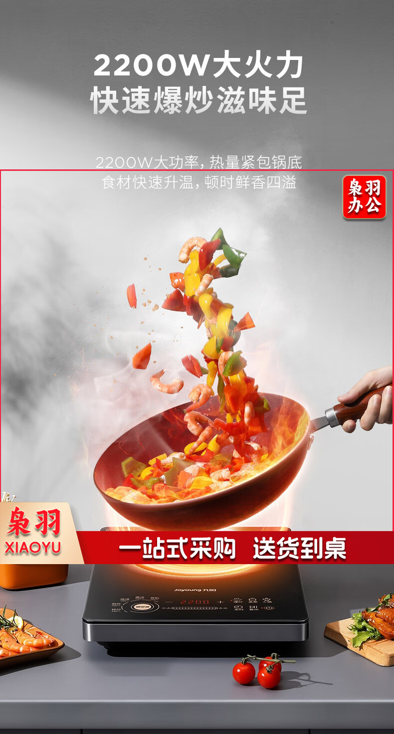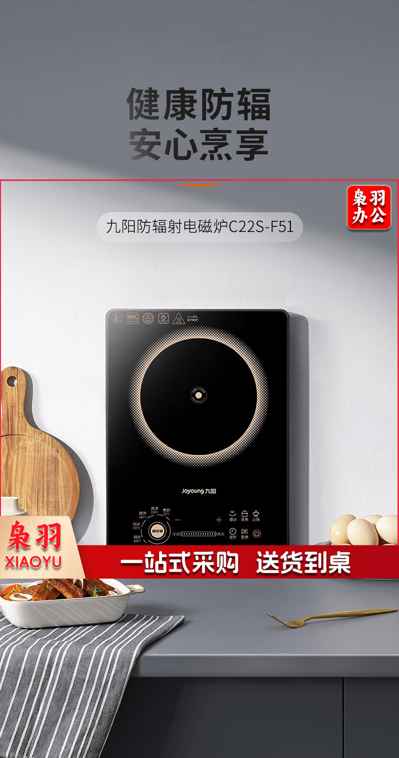 九阳(Joyoung)电磁炉电陶炉2200W大功率家用触控按键耐用面板十档火力纤薄定时功能电磁灶火锅炉C22S-F51