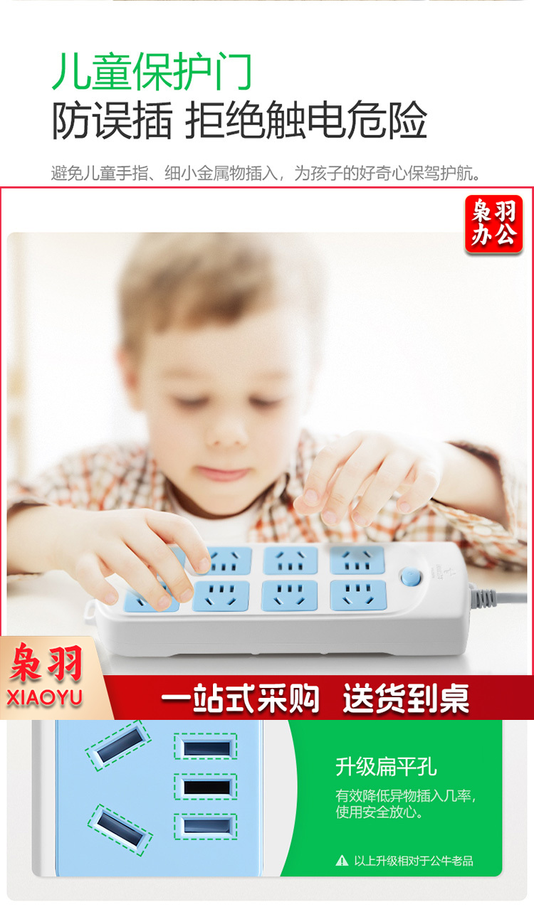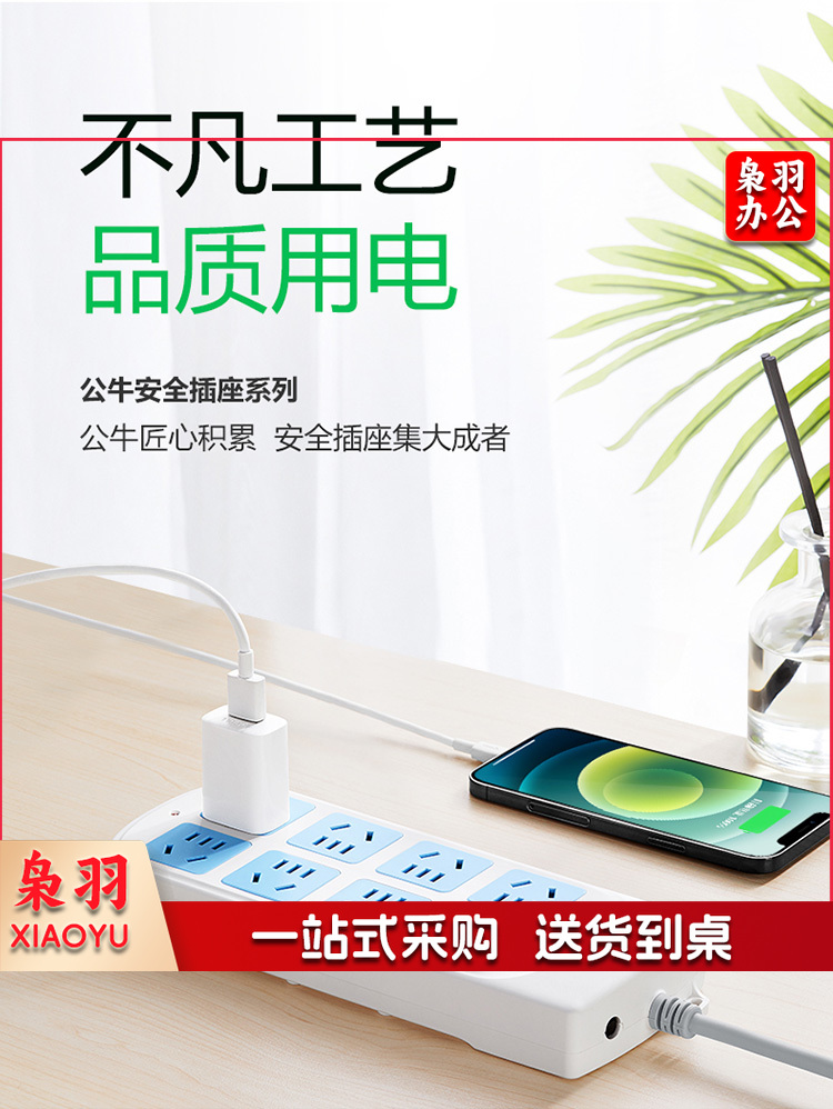 公牛(BULL)新国标插座/插线板/插排/排插/接线板/拖线板 8位总控全长3米超功率保护 GN-604--