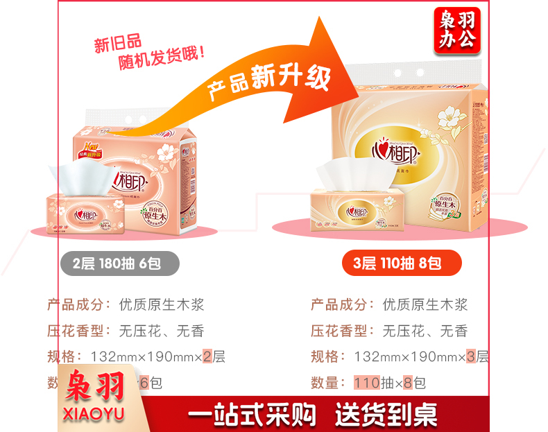 心相印软抽纸面巾 经典系列 3层110抽8包 S码(新旧品 层抽包数不同 随机发货 具体看详情页 )