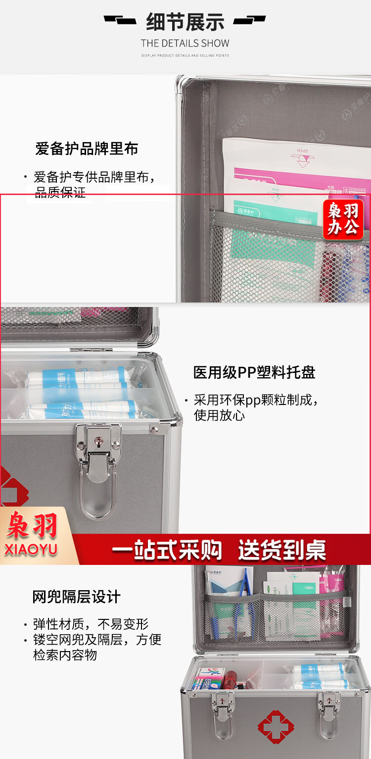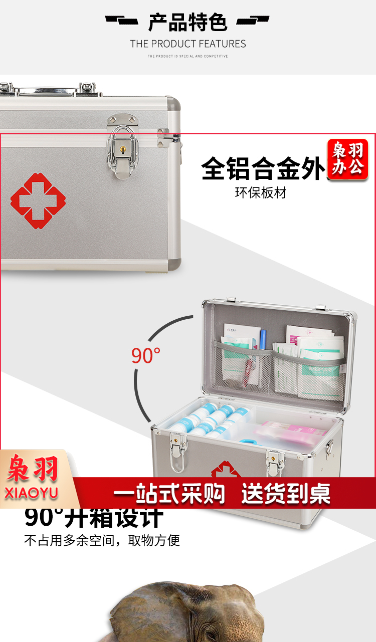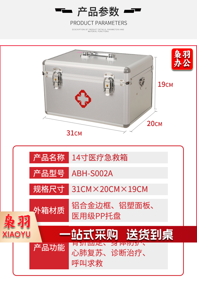 爱备护 银色14寸医疗急救箱急救包含药家用大容量应急家庭收纳医药箱*1个 ABH-S002A