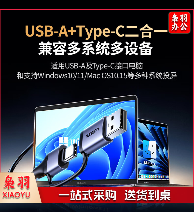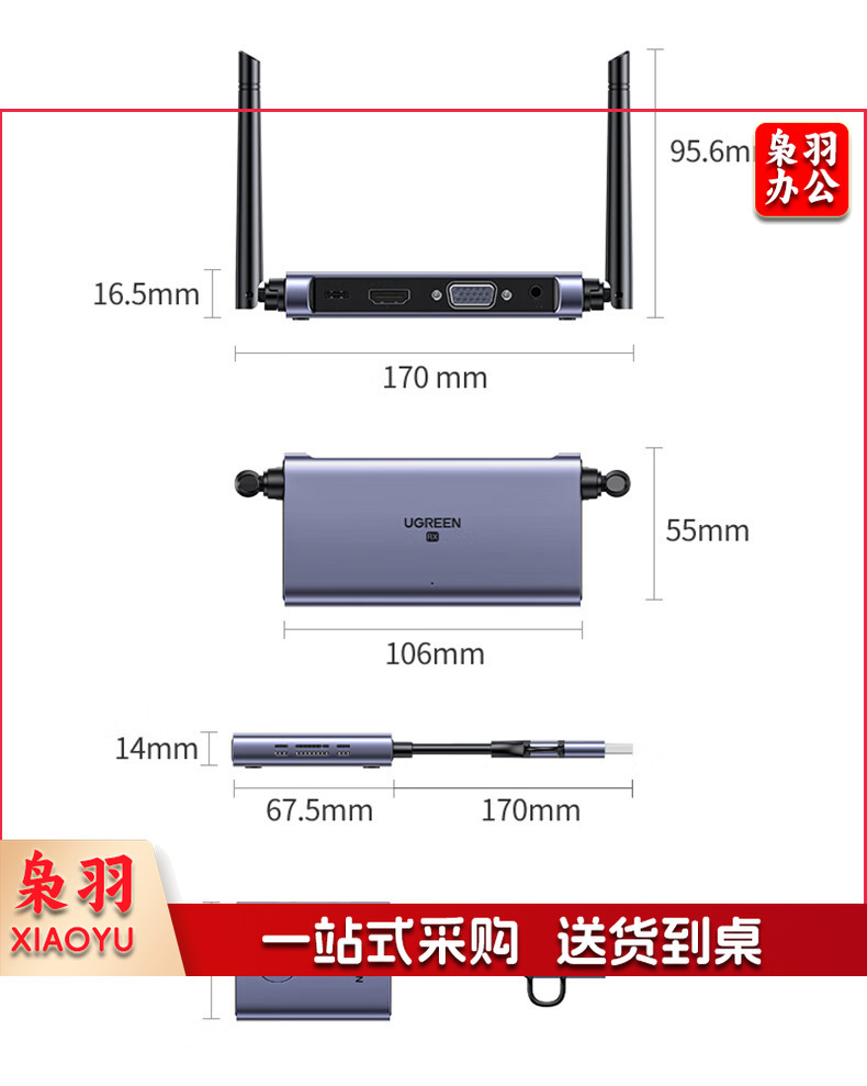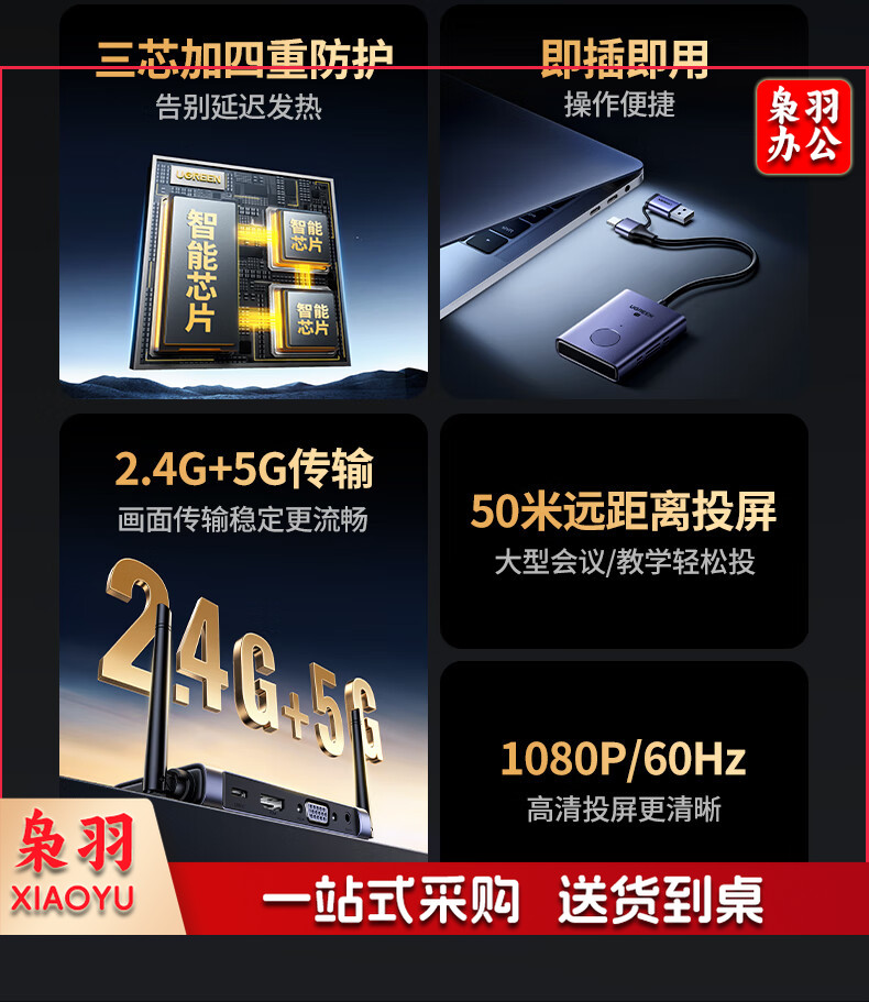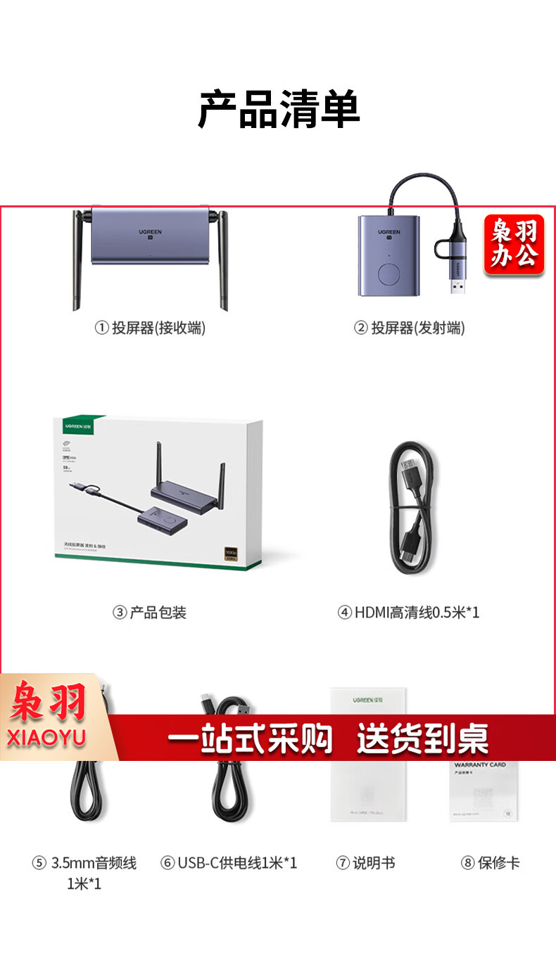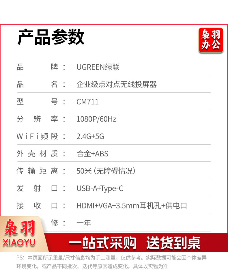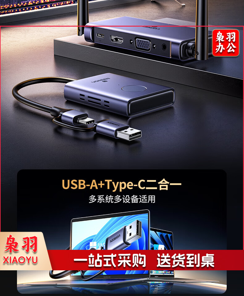 绿联(UGREEN)HDMI无线投屏器 USB同屏器高清办公会议 适用笔记本台式电脑连接显示器投影仪50米传输器25374