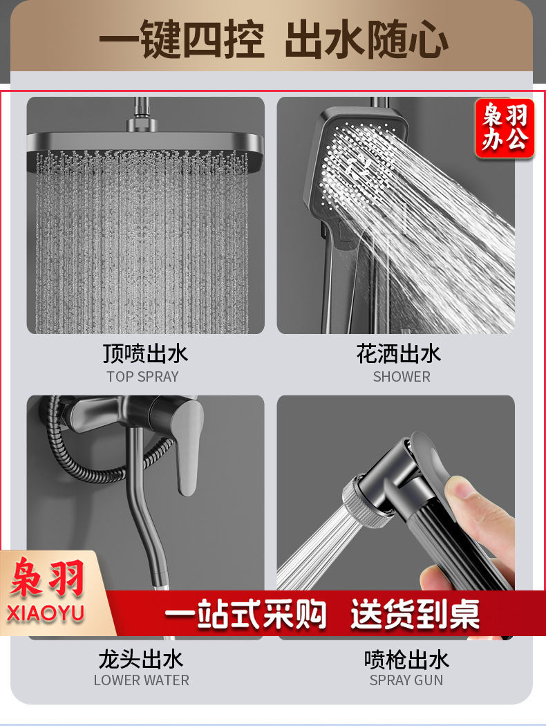 学校淋浴花洒套装淋浴器卫生间精铜枪灰恒温洗澡淋雨浴霸增压花洒(【升级款】枪灰四档花洒套装◆配13寸巨幕方顶喷)