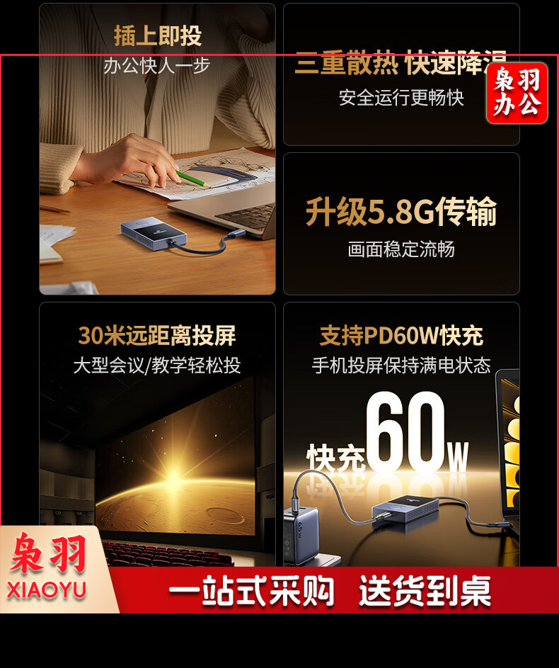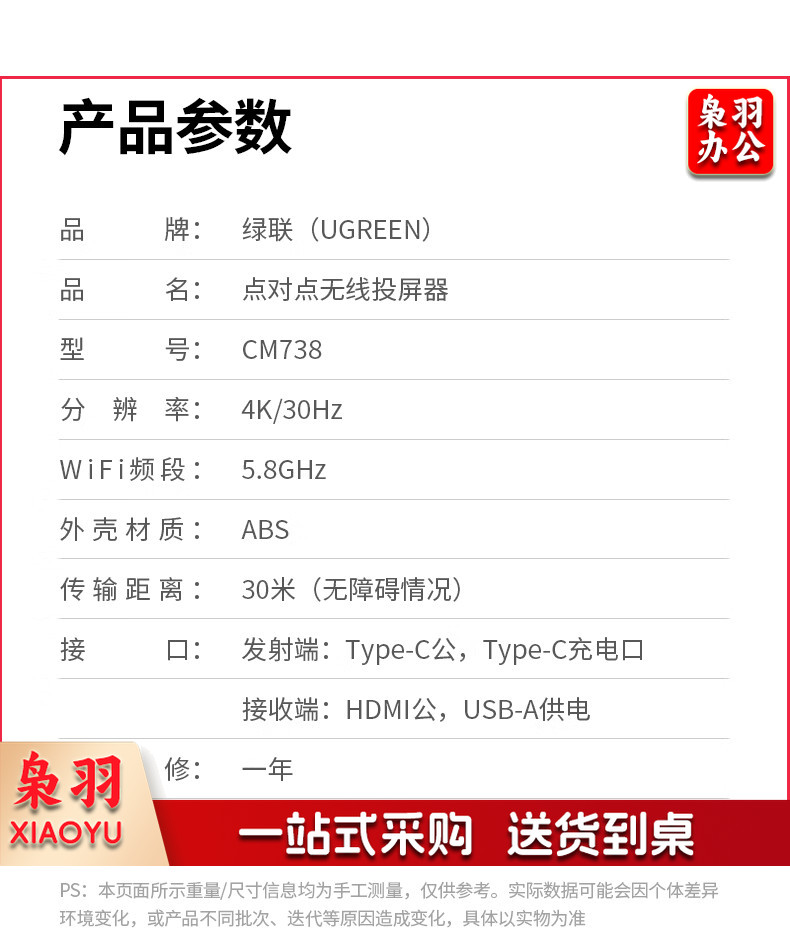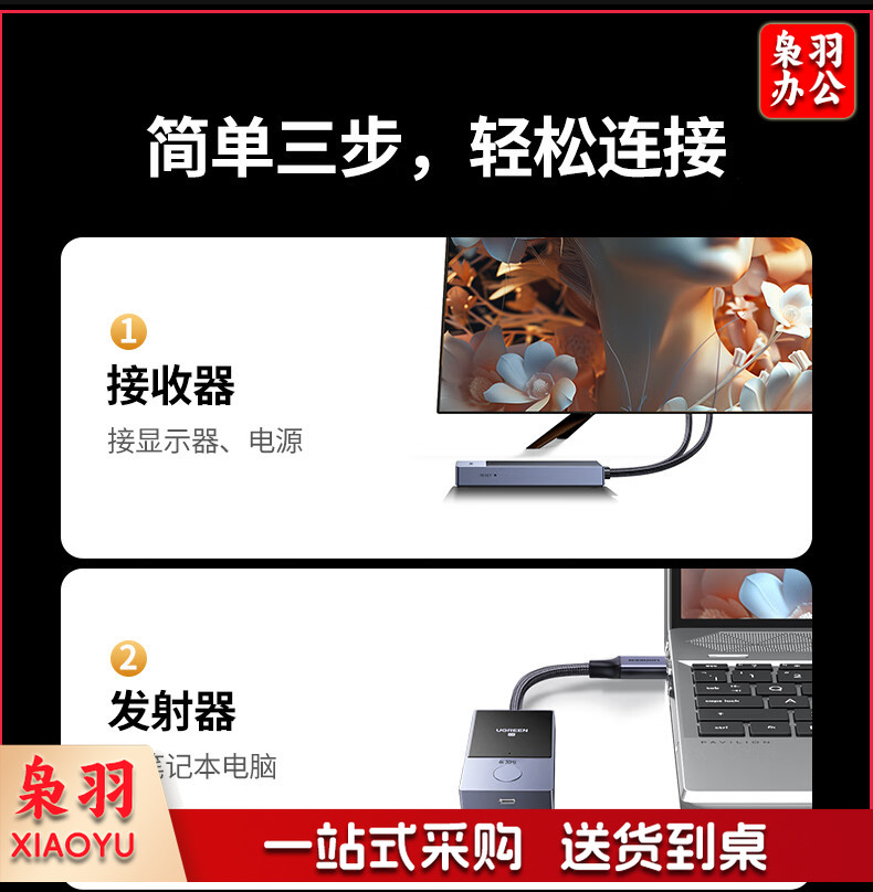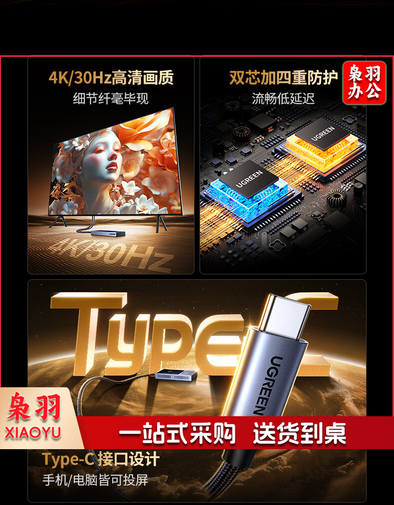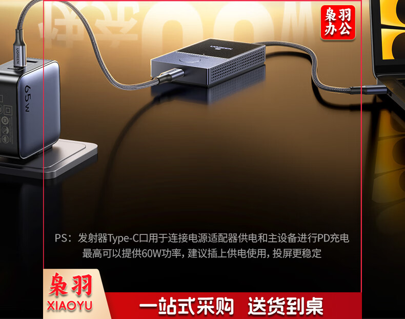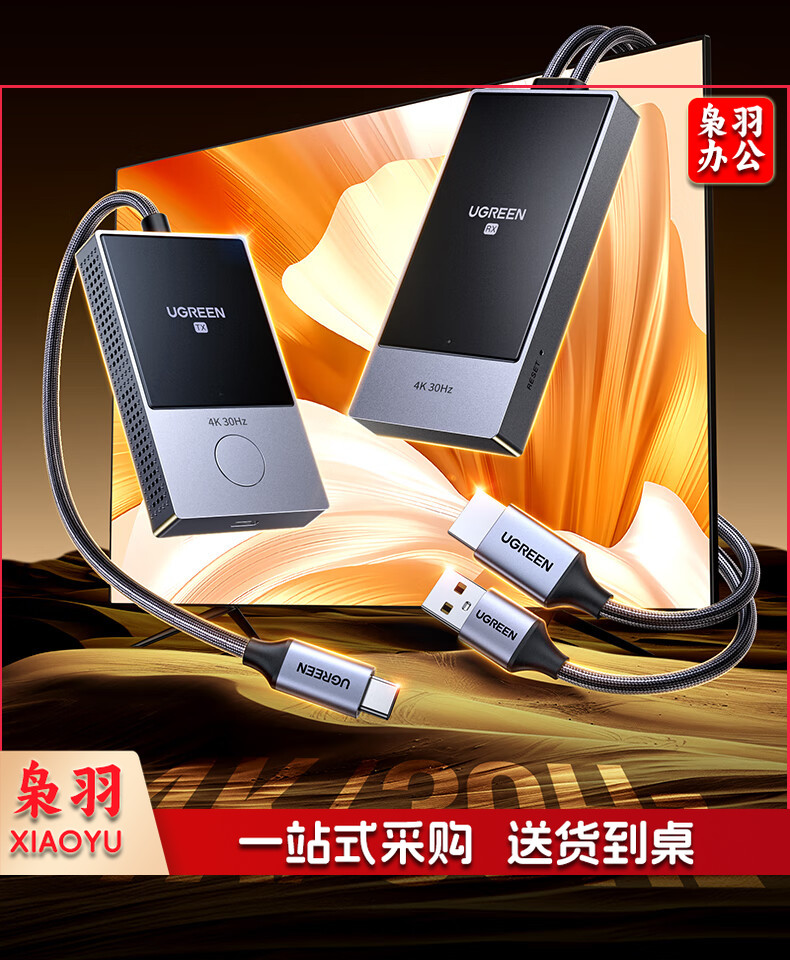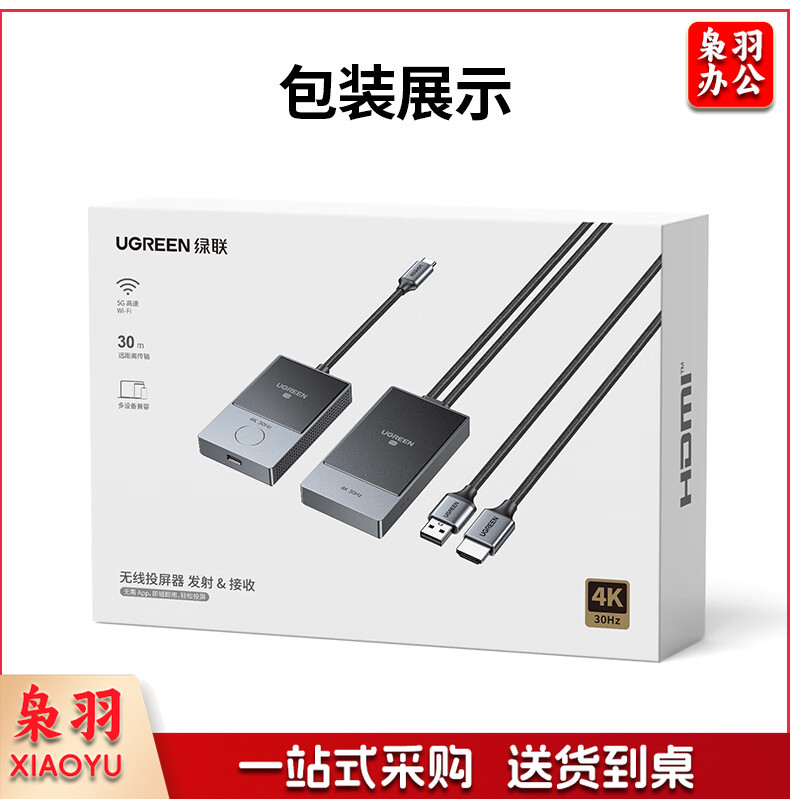 绿联(UGREEN)Type-C无线投屏器 HDMI4K企业会议同屏器适用手机显示器投影仪30米传输器35032