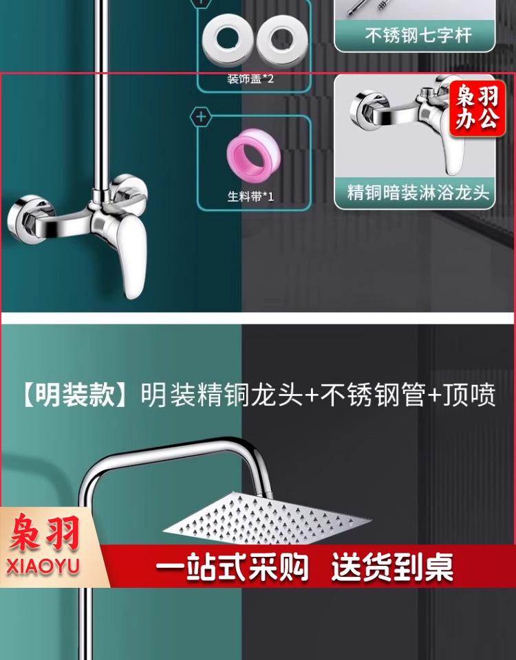 学校用花洒 校用淋浴 (【暗装款】精铜龙头+不锈钢管+6寸不锈钢圆顶喷)卫浴工程花洒套装澡堂淋浴浴场学校浴池简易明装暗装冷热喷头