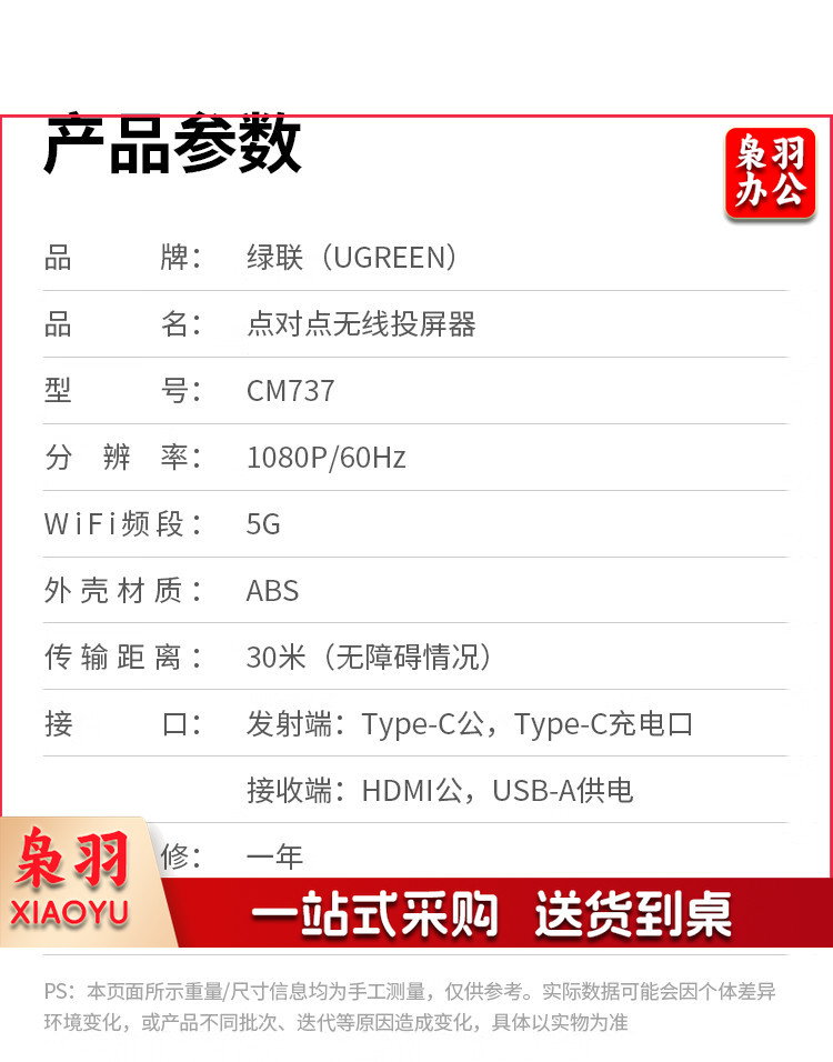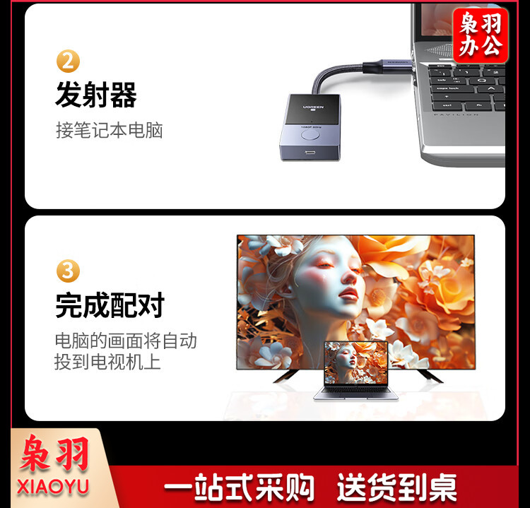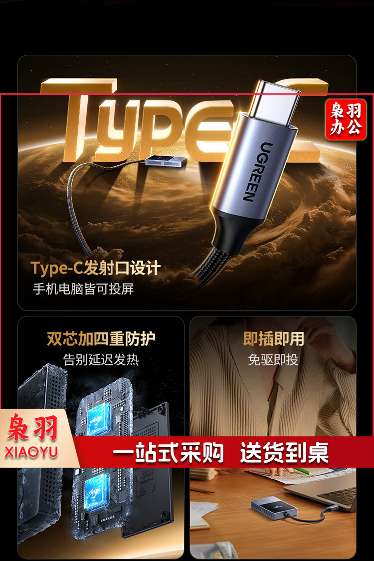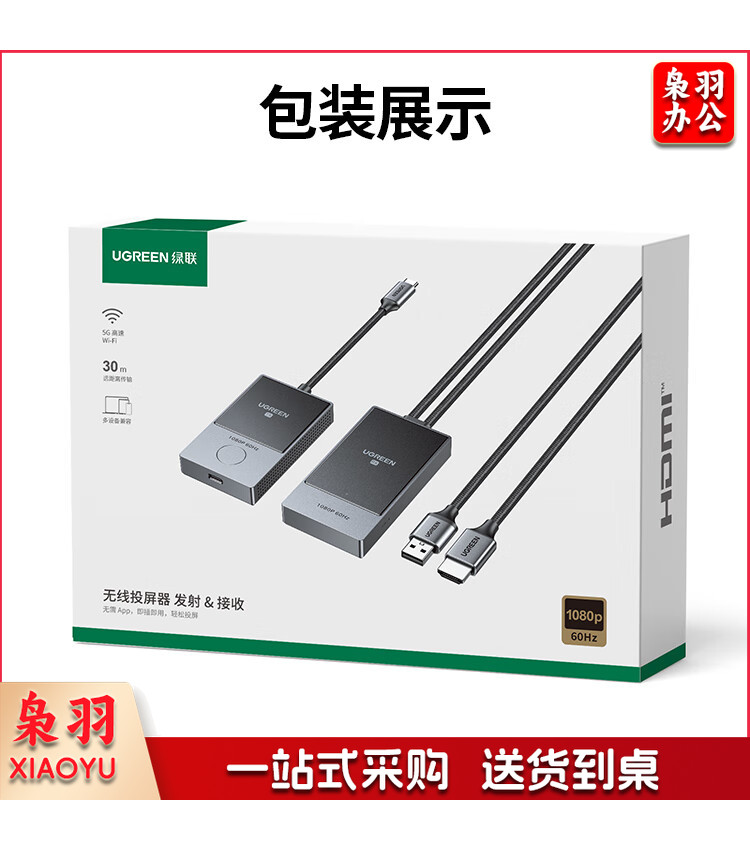 绿联(UGREEN)Type-C无线投屏器 HDMI高清企业会议同屏器 适用手机连投影仪30米传输器35031