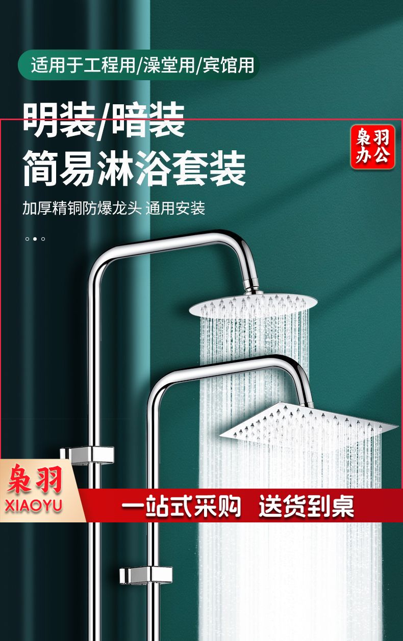 花洒淋浴配件套装公共澡堂淋浴室(【精铜】明装龙头七字+不锈钢防爆喷头)洗浴池宾馆学校工地简易单水明装暗装冷热花洒套装