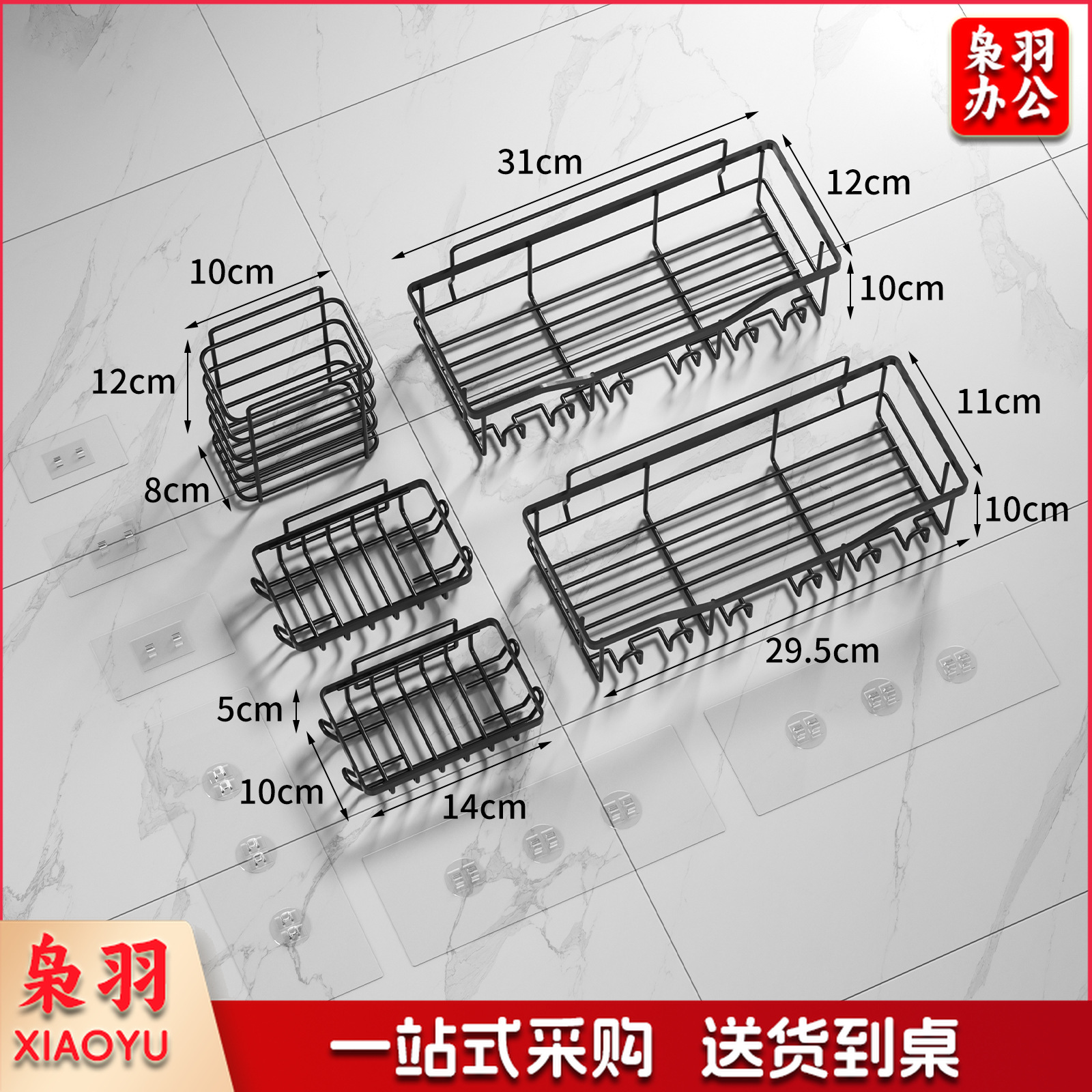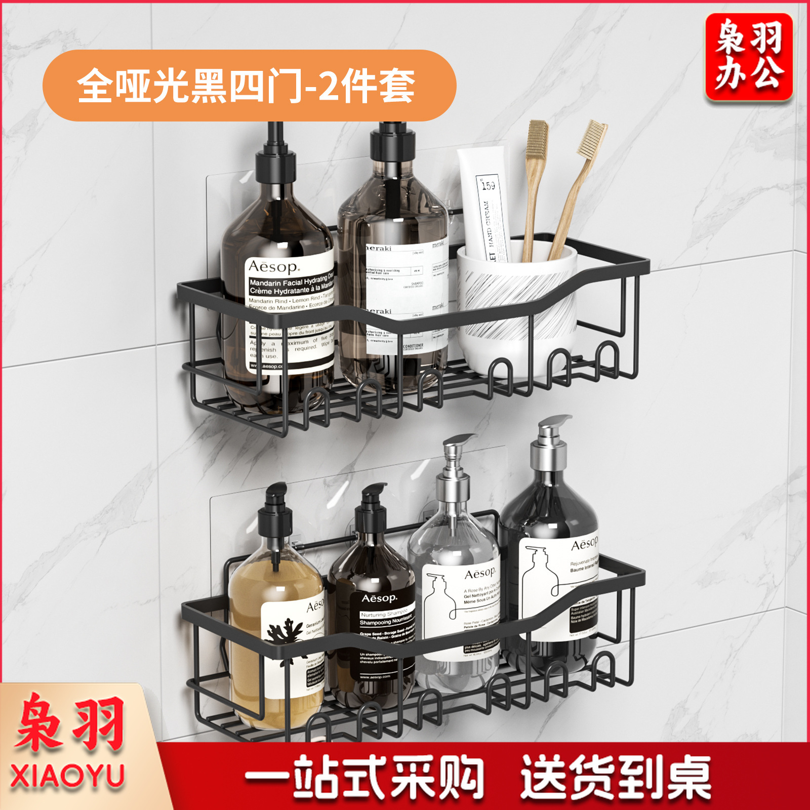 免打孔收纳(四件套)浴室置物铁艺卫生间墙上壁挂式洗漱用品肥皂架子