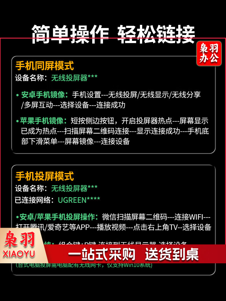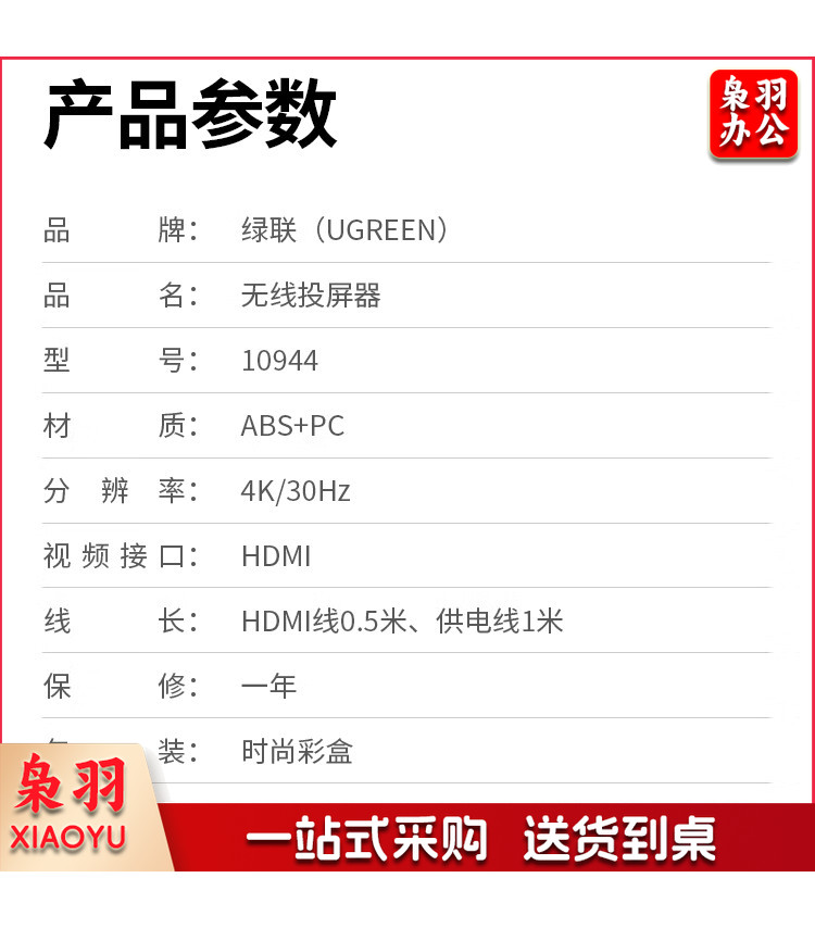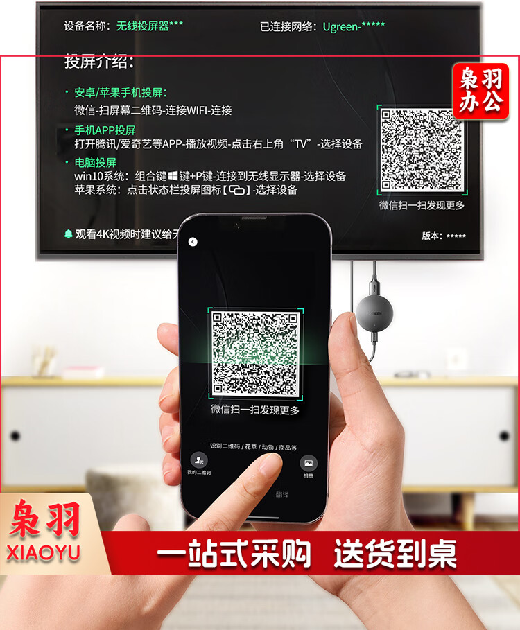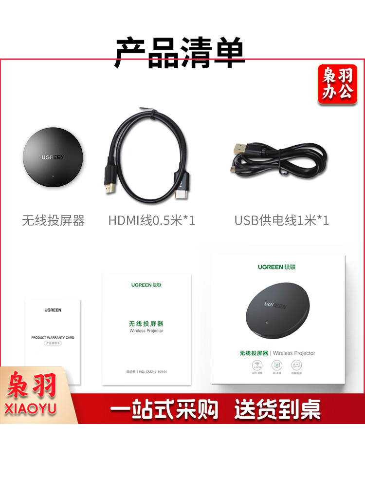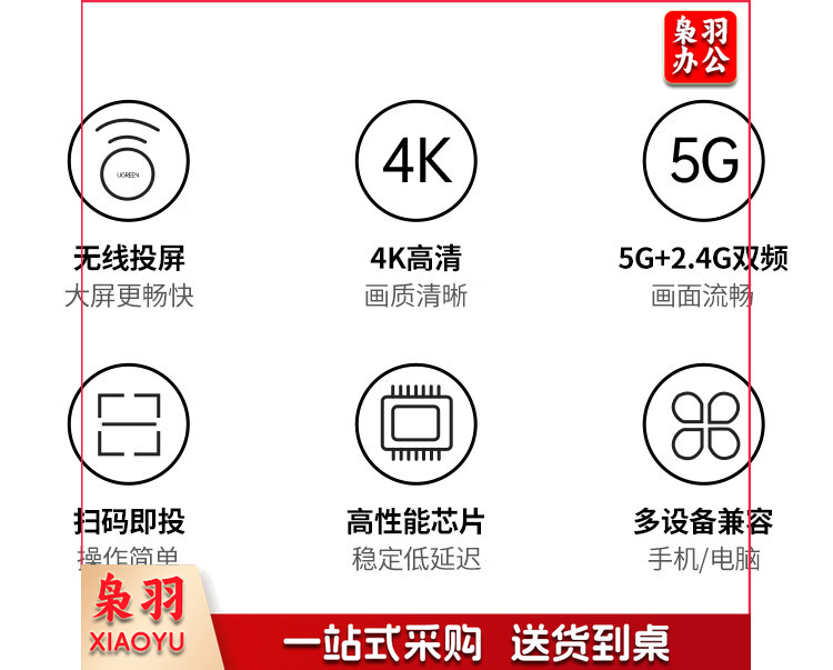 绿联(UGREEN)手机无线投屏器 HDMI音视频同屏传输器 4K高清双频连接器适用苹果安卓手机电脑接显示器投影仪