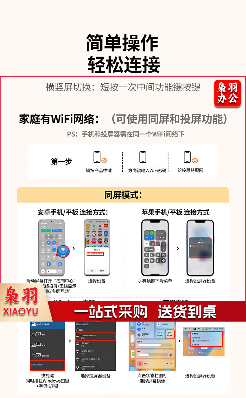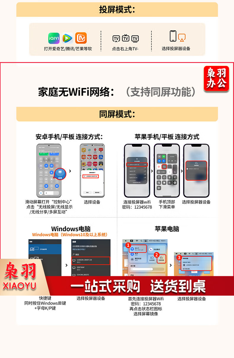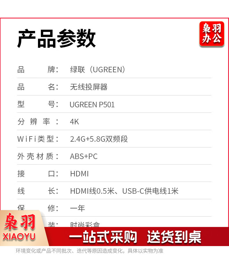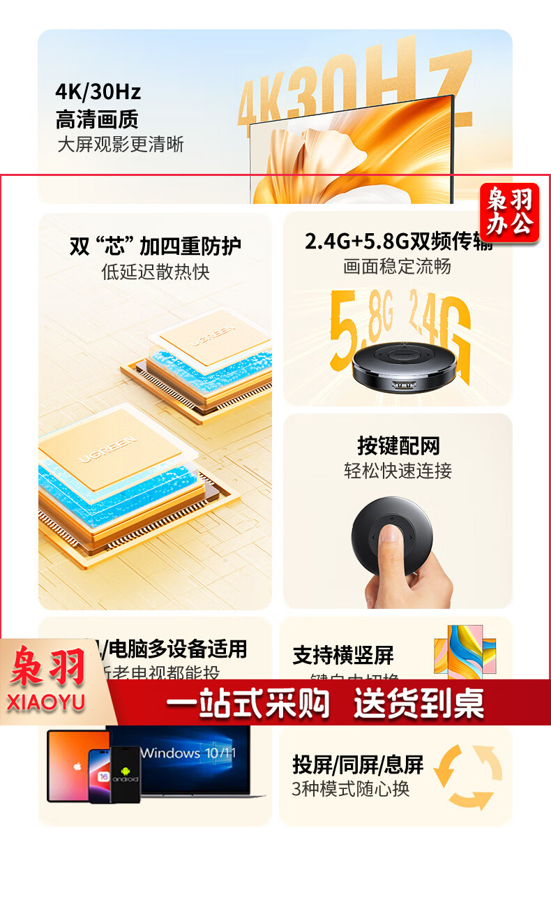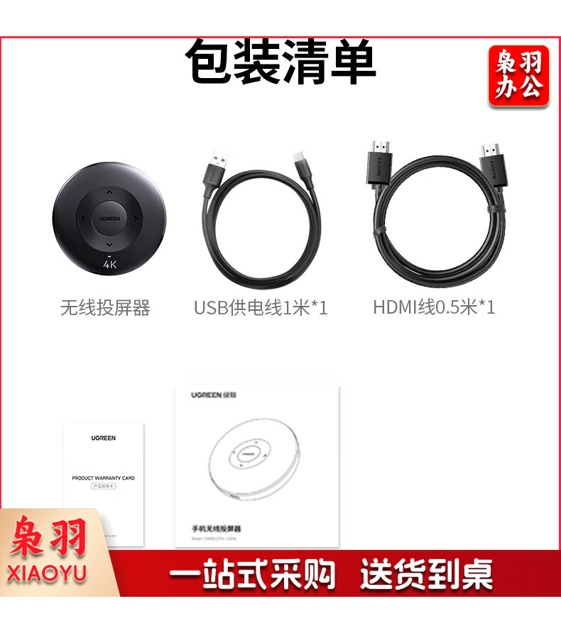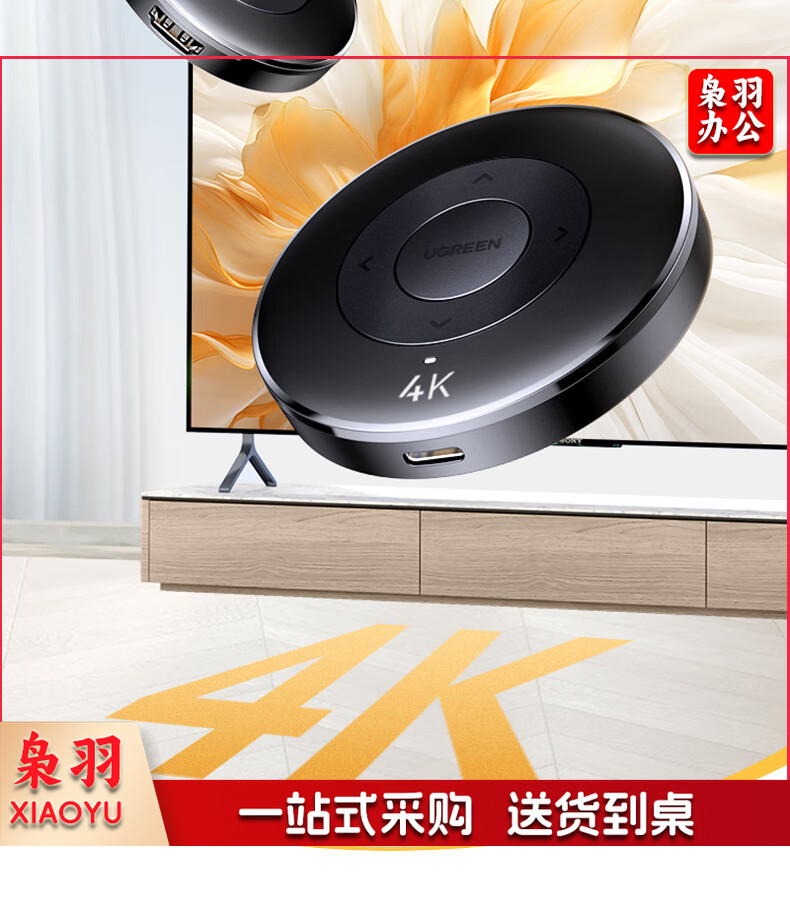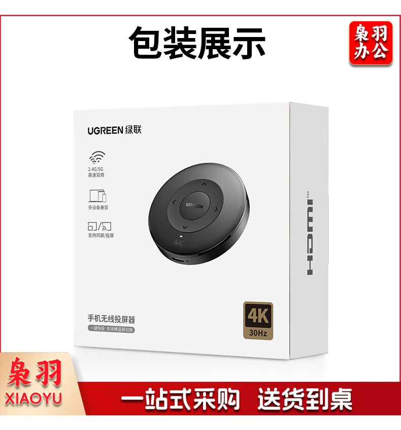 绿联(UGREEN)手机无线投屏器 4K高清HDMI音视频同屏传输器 支持横竖屏适用苹果安卓手机电脑接显示器投影仪