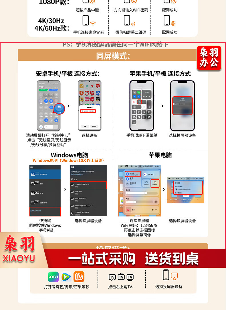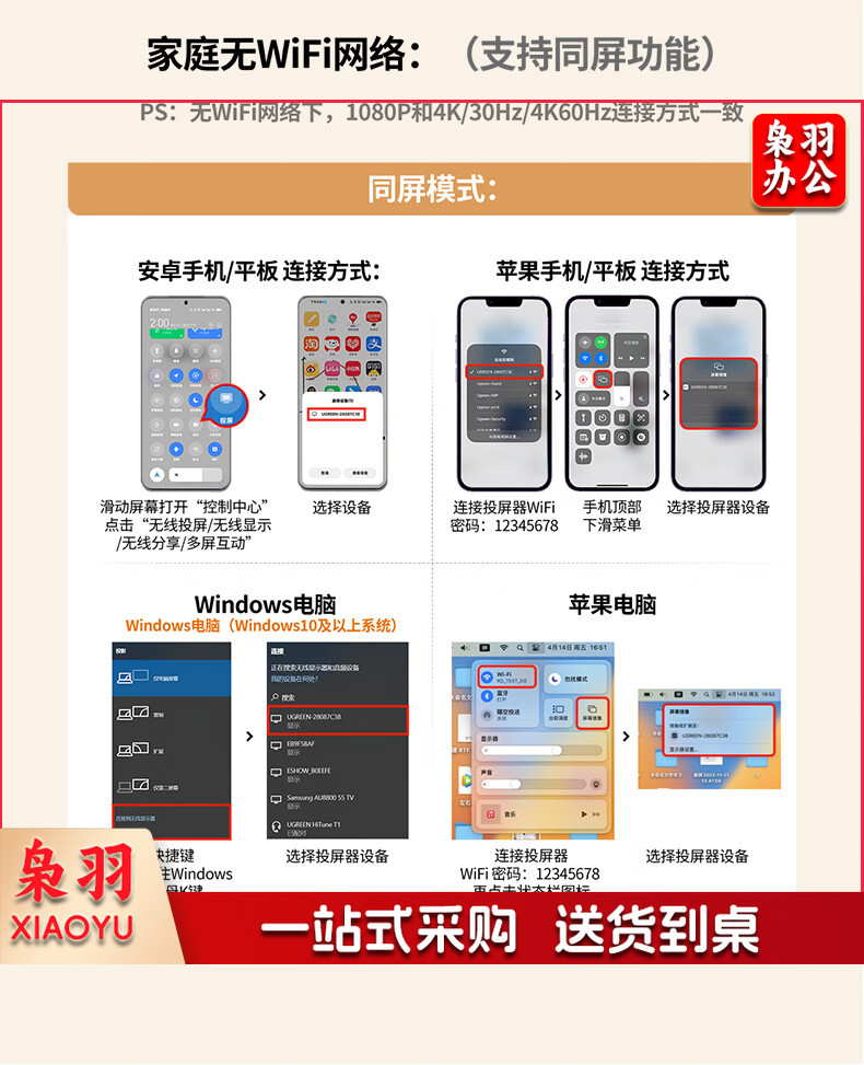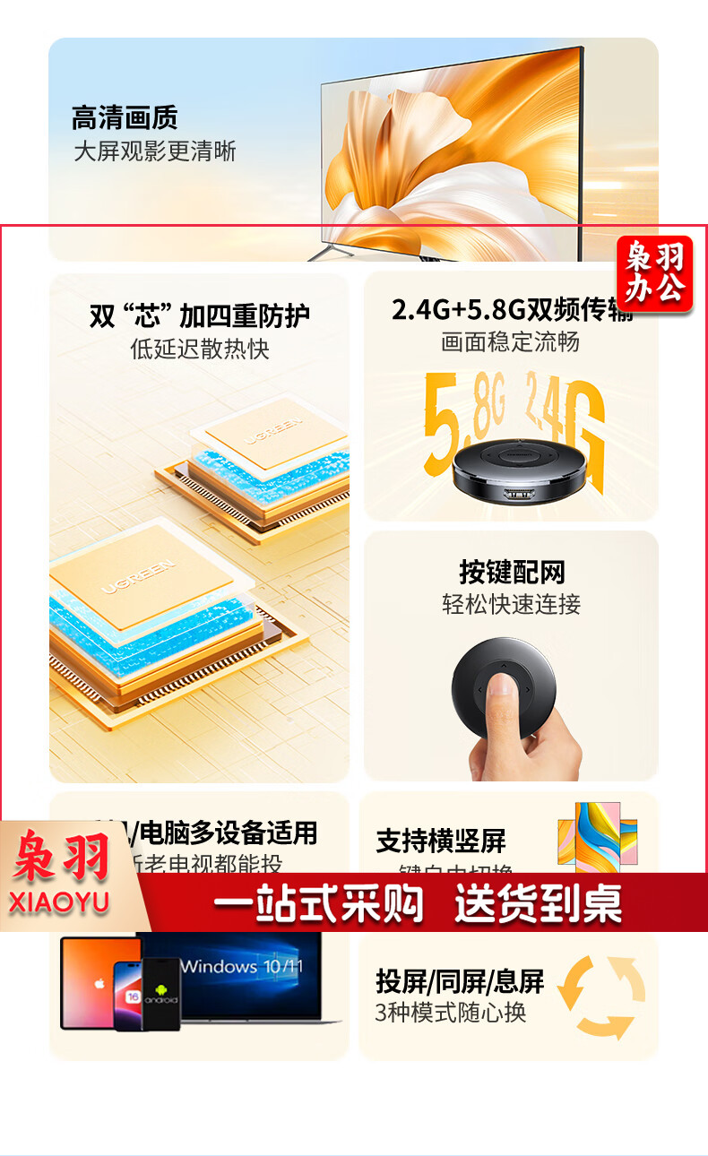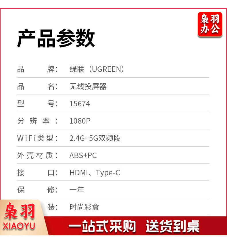 绿联(UGREEN)手机无线投屏 HDMI音视频同屏传输器高清连接器适用苹果安卓华为手机电脑接显示器投影仪15674