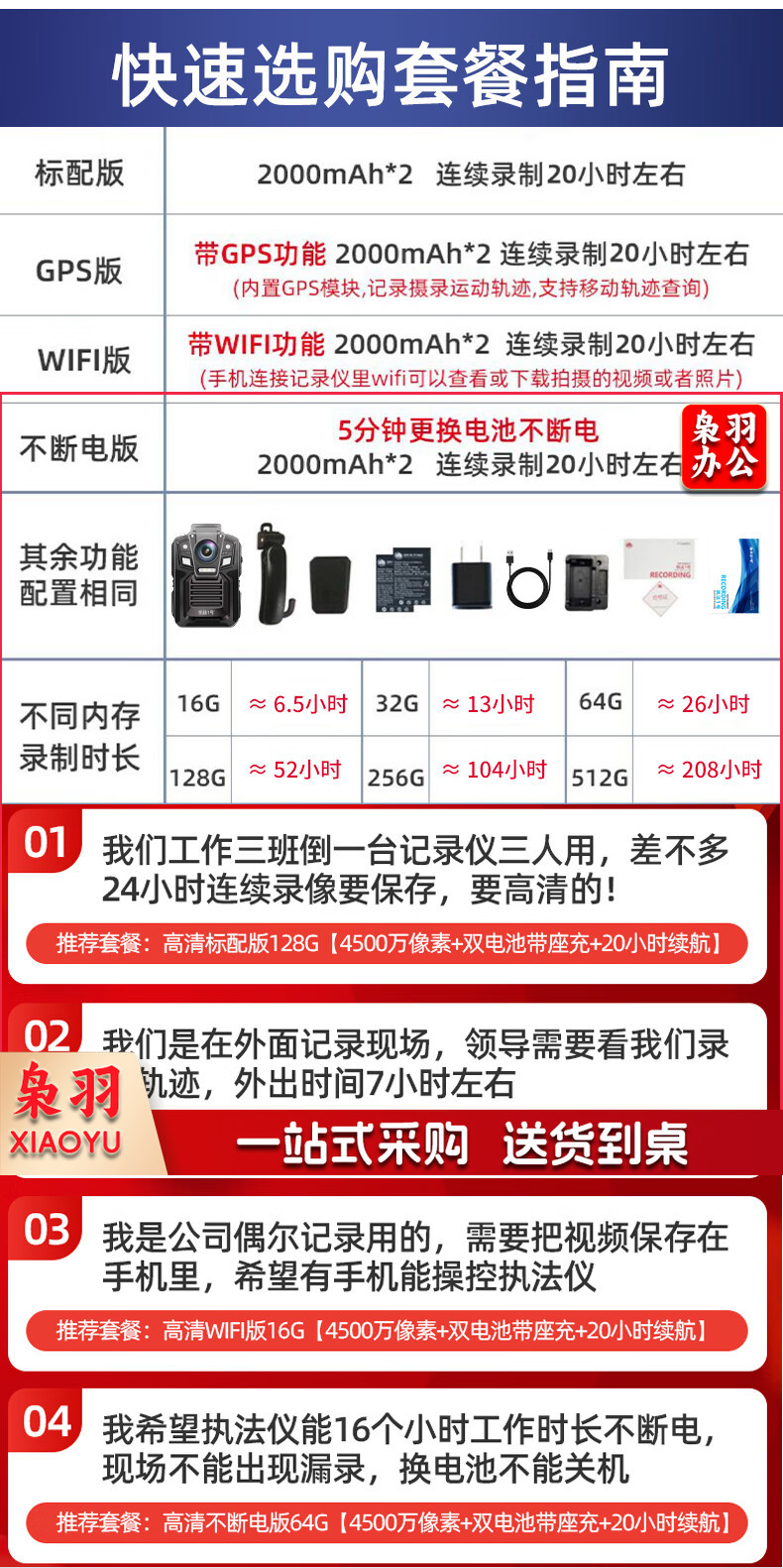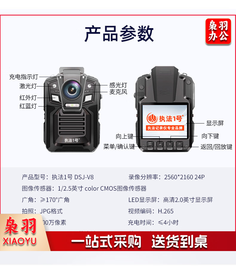 执法1号 DSJ-V8执法记录仪4K高清红外夜视超长续航电力铁路执法仪256G