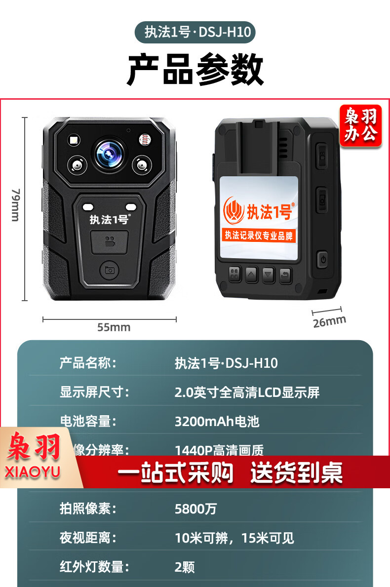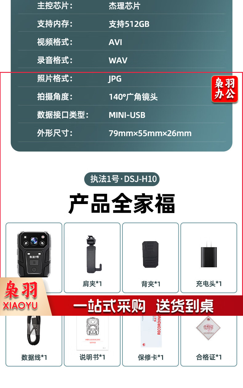 执法1号DSJ-H10执法记录仪17小时超长续航插卡式5800万像素高清执法仪16G