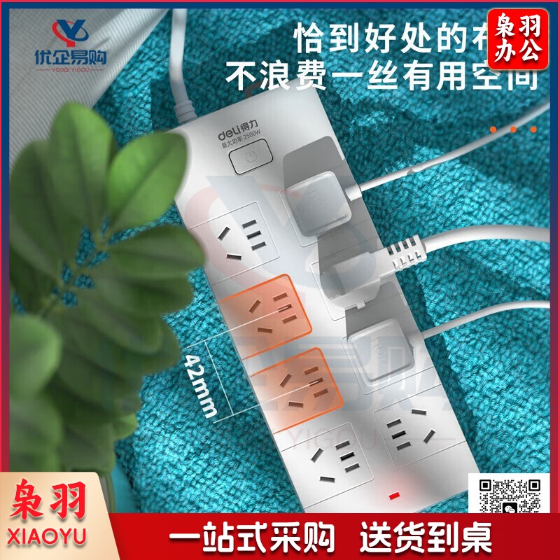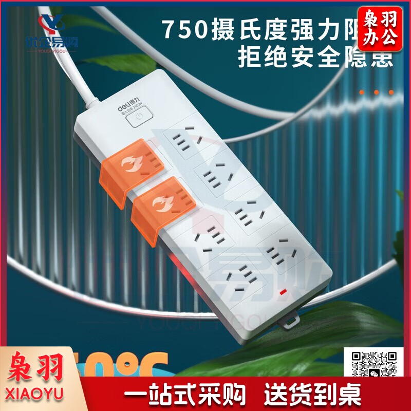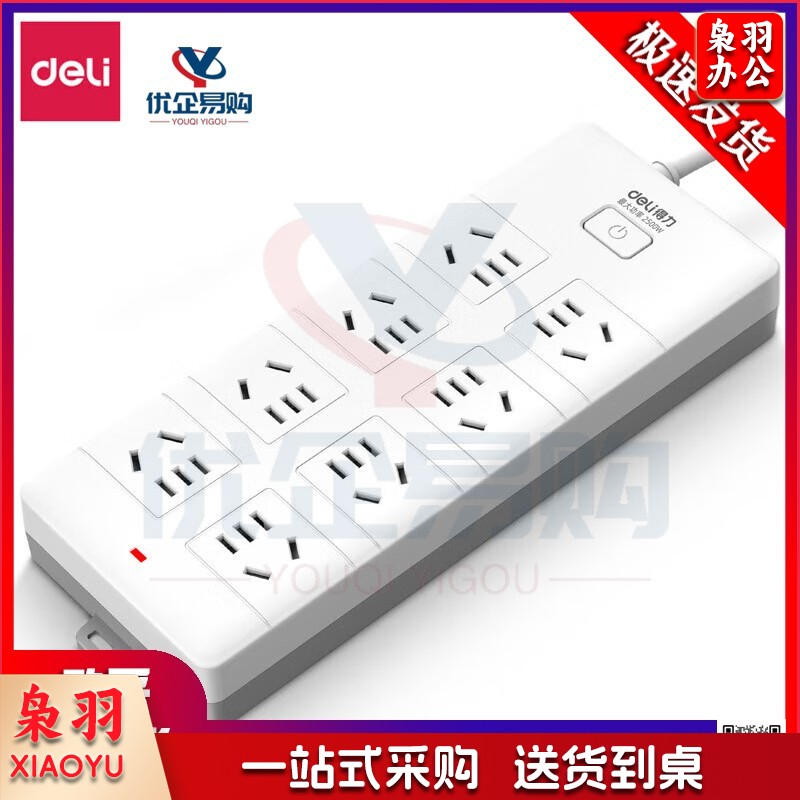 得力18170-03插座_8组_3米_PVC袋装(白)(只)