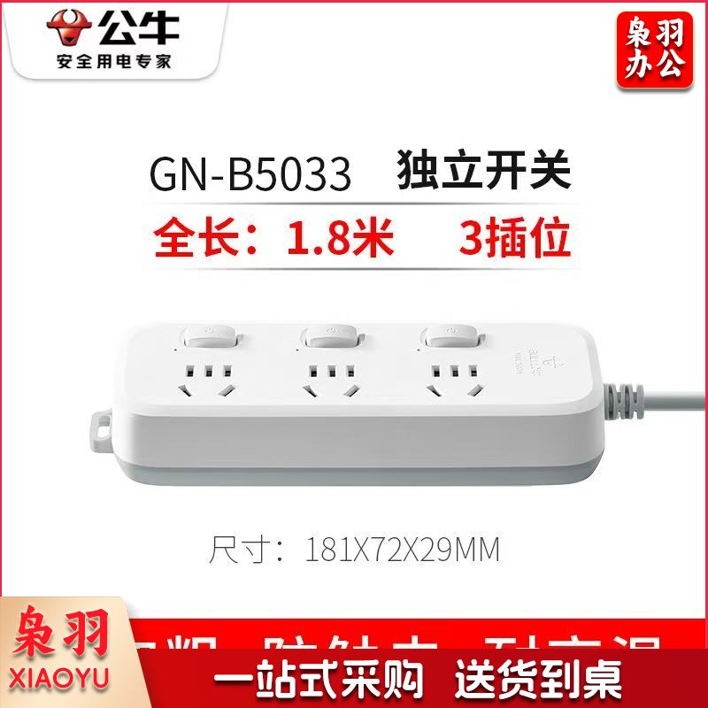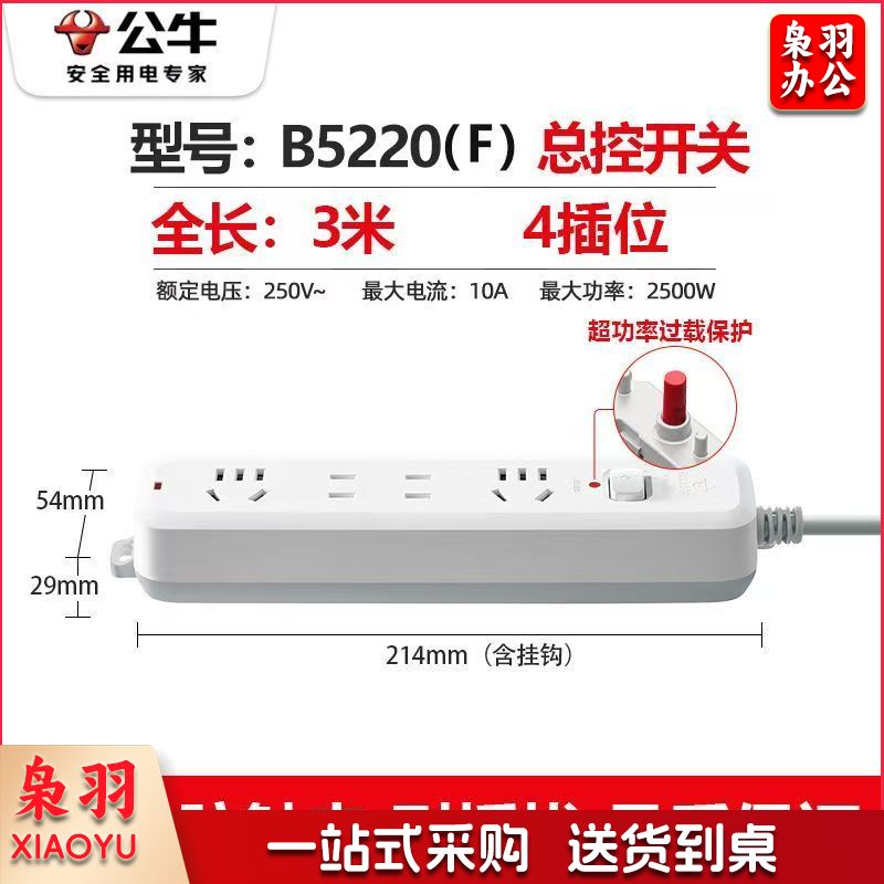 公牛(BULL)插座4插位 全长1米独立开关-cpy6245