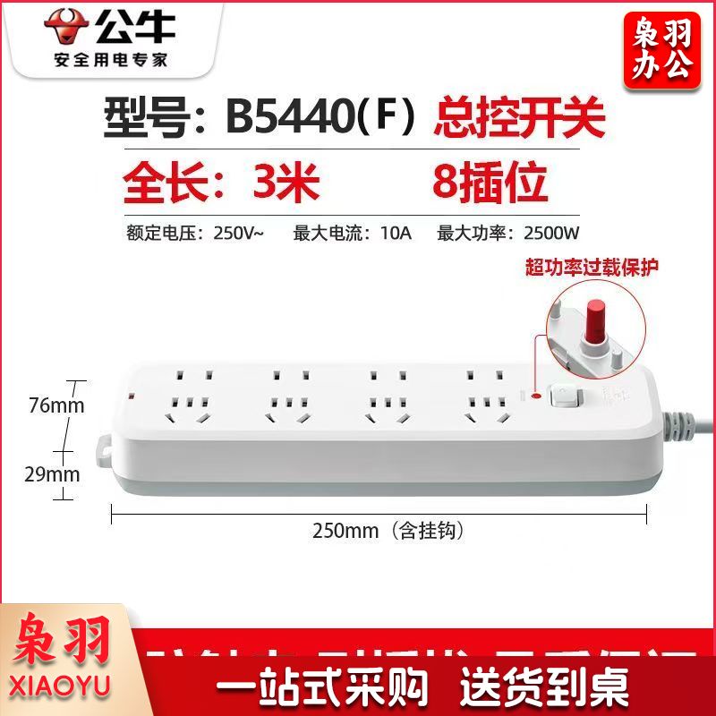 公牛(BULL)插座8插位 全长3米总控开关