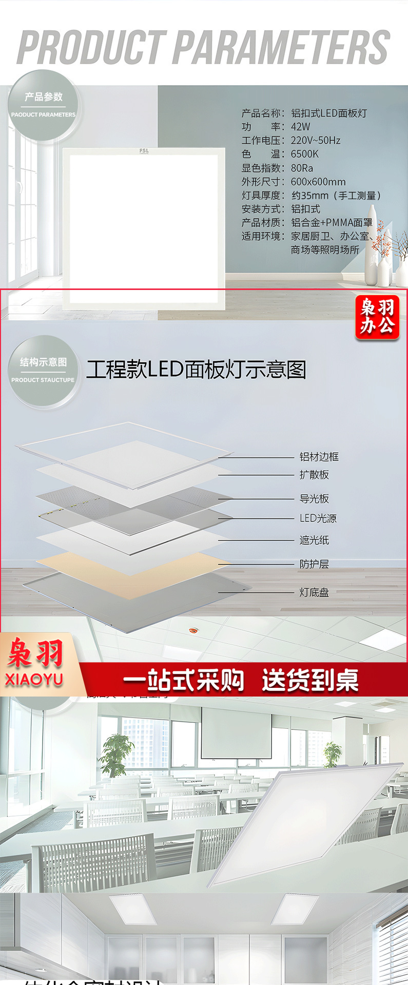 集成吊顶灯平板灯平板灯平板灯平板灯60X60铝36W白光57K)LED面板灯厨房集成吊顶嵌入式铝扣商照平板灯