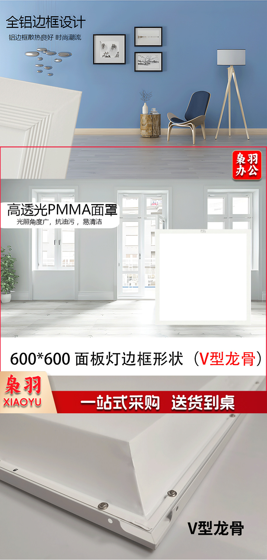 集成吊顶灯平板灯平板灯平板灯平板灯平板灯平板灯595X595铝42W白光65K)LED面板灯厨房集成吊顶嵌入式铝扣商照平板灯