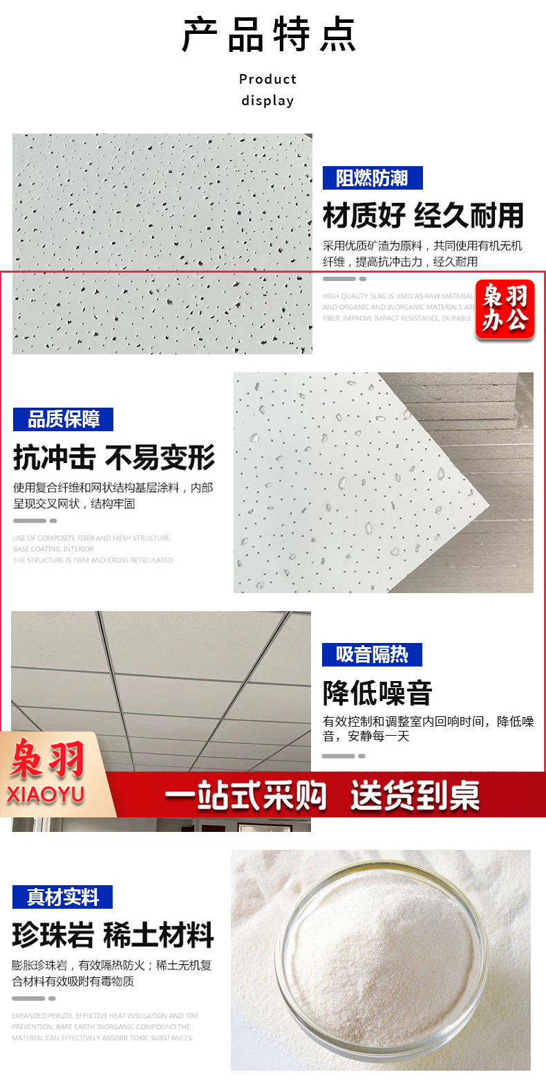 矿棉板600*600*1.4cm(防潮)防潮隔热黑色矿棉吸音板办公室天花板吊顶材料