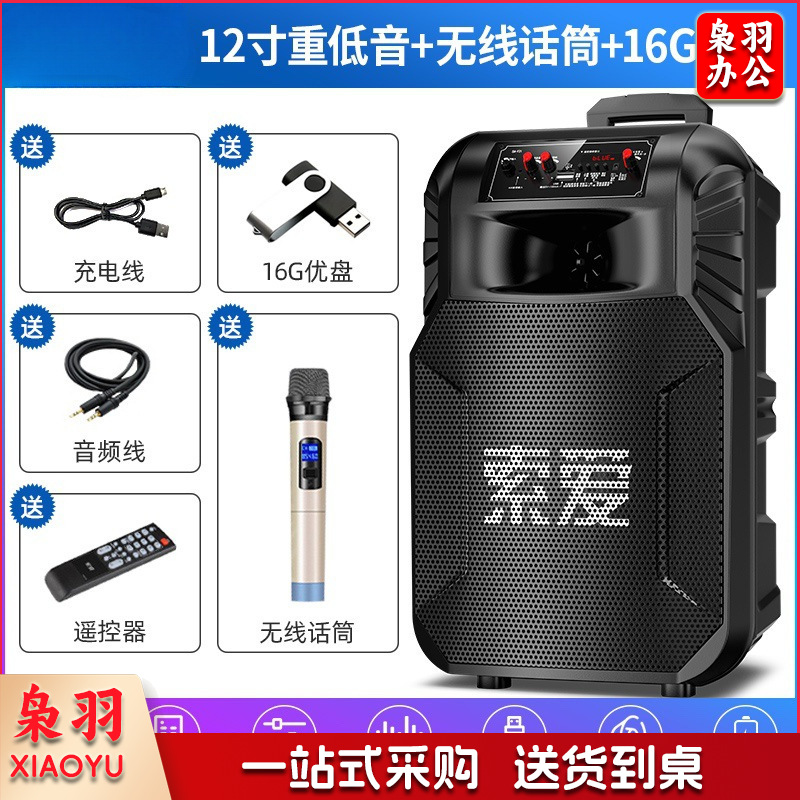 音箱(12寸重低音+无线话筒)广场舞移动拉杆便携式蓝牙音箱大功率家庭唱K歌