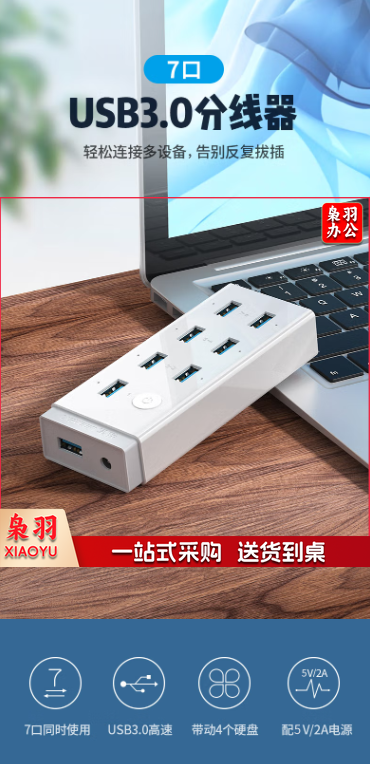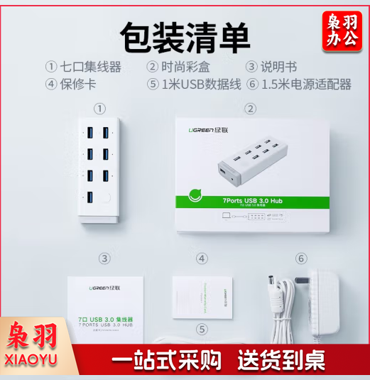 绿联 USB3.0分线器一拖七 高速拓展7口HUB集线器延长线 台式机笔记本电脑多接口转换器扩展坞 1米【带1.5米5V/2A电源适配器】