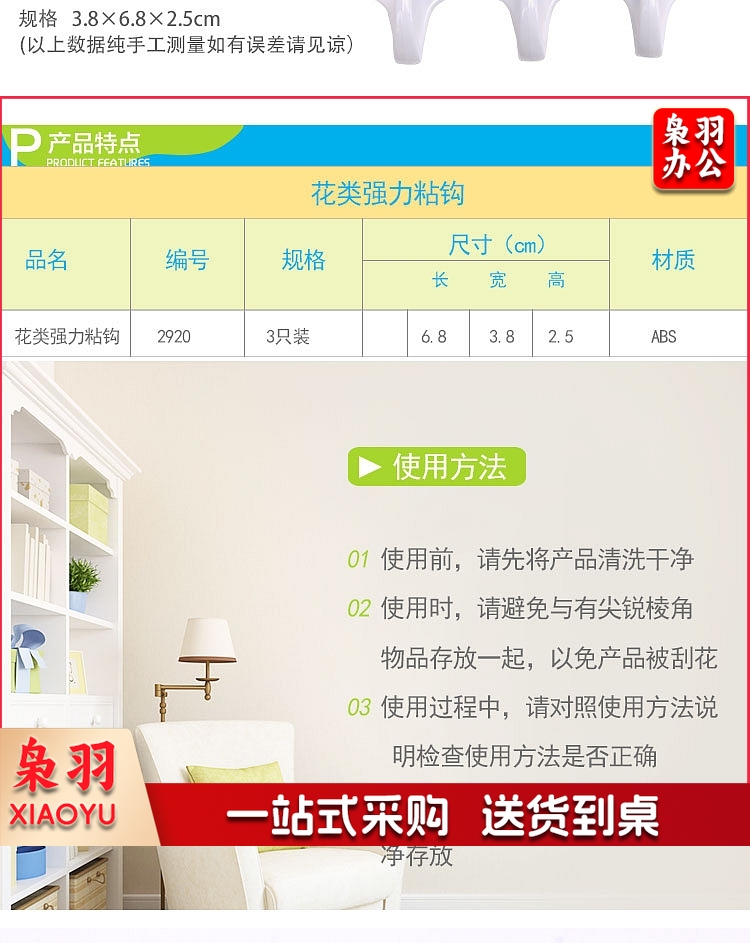 茶花(CHAHUA) 2920 挂钩38*68*25mm*3个/包(单位:包)