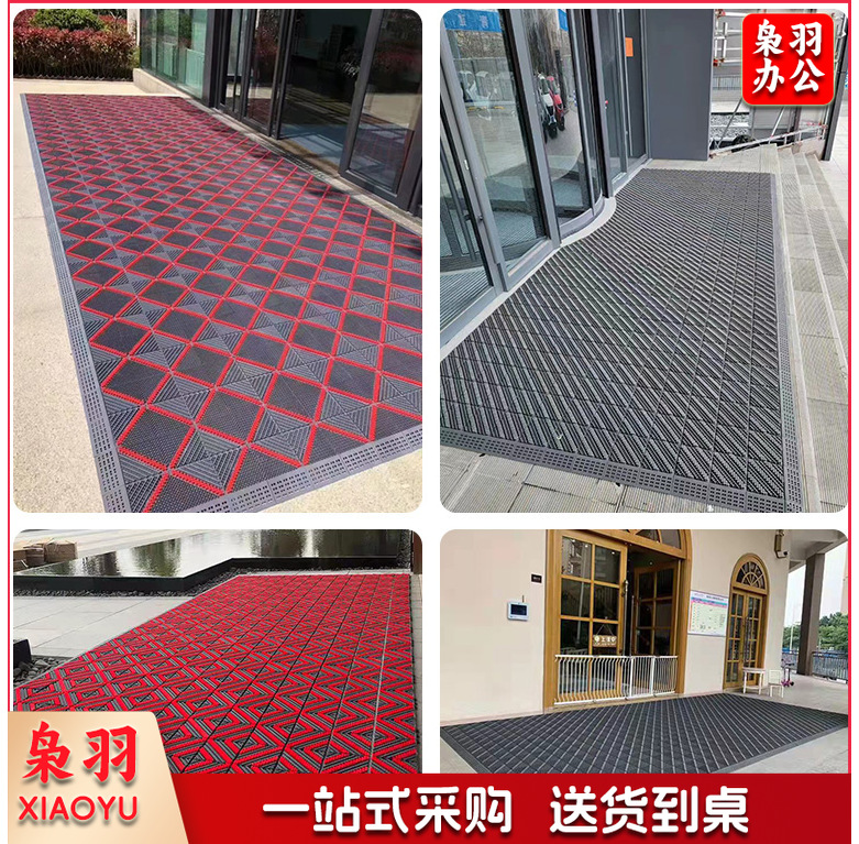 室外防滑防水地垫(灰色单刷灰毛75*180)塑料拼接除尘地板酒店入户门口毛刷镂空款式