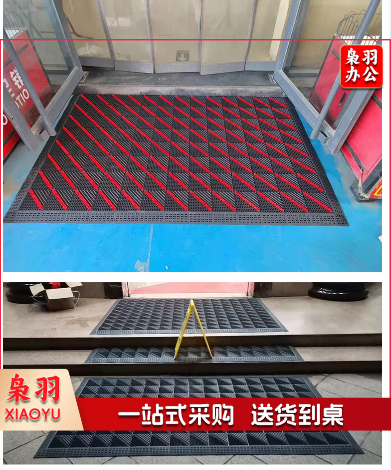 室外防滑防水地垫(灰色单刷灰毛90*270)塑料拼接除尘地板酒店入户门口毛刷镂空款式