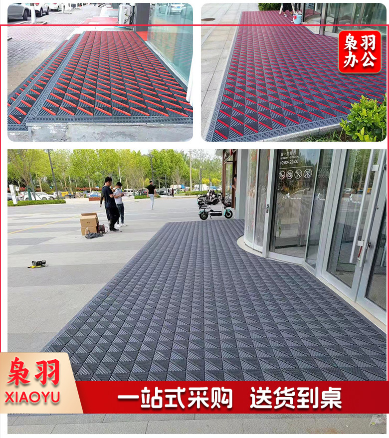 室外防滑防水地垫(灰色三刷红毛105*240)塑料拼接除尘地板酒店入户门口毛刷镂空款式