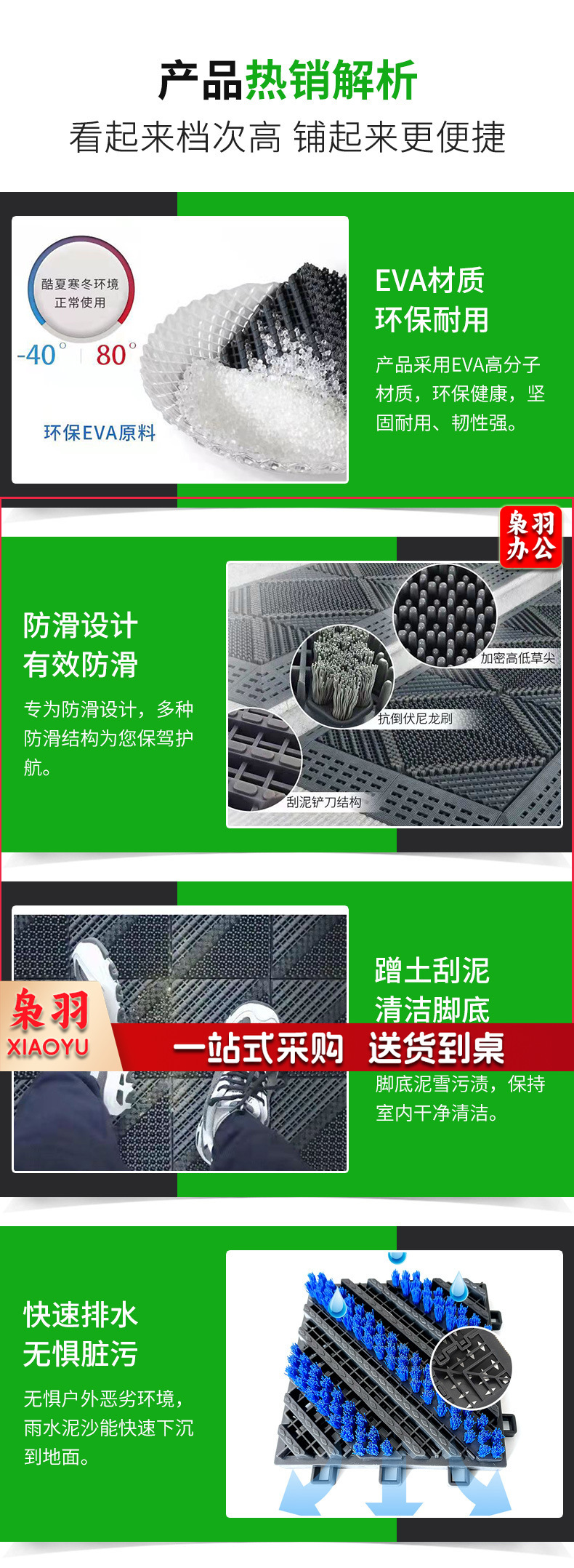 室外防滑防水地垫(灰色三刷红毛120*150)塑料拼接除尘地板酒店入户门口毛刷镂空款式