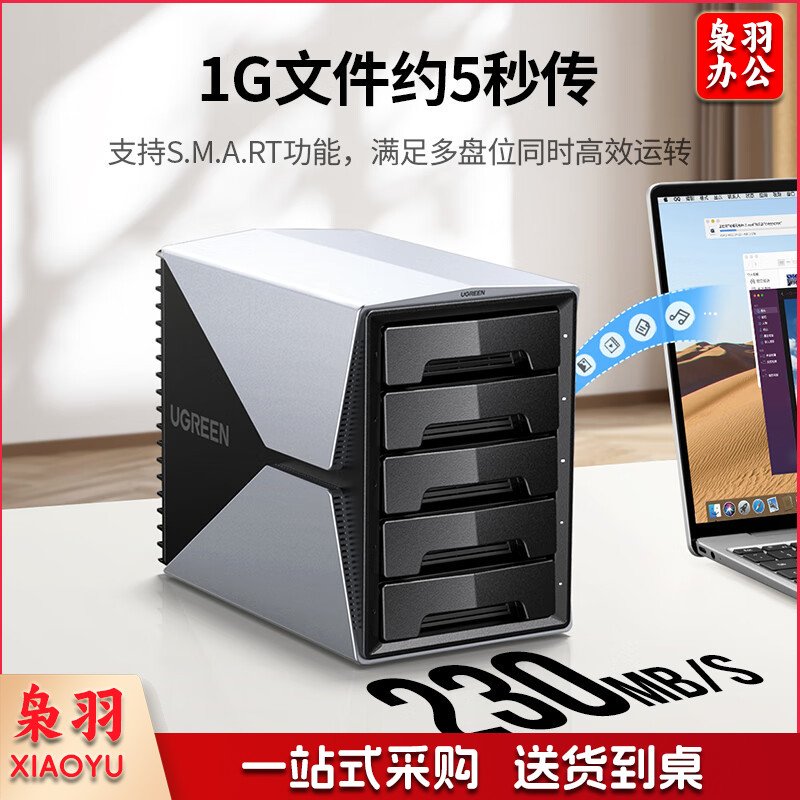 绿联 70441 5盘RAID磁盘阵列盒硬盘柜/3.5英寸 SATA串口Type-C移动硬盘盒