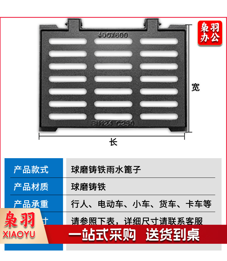 球墨铸铁排水沟盖板雨水篦子(沟盖板250*500*B125)下水道污水电缆盖板水槽地沟格删井盖