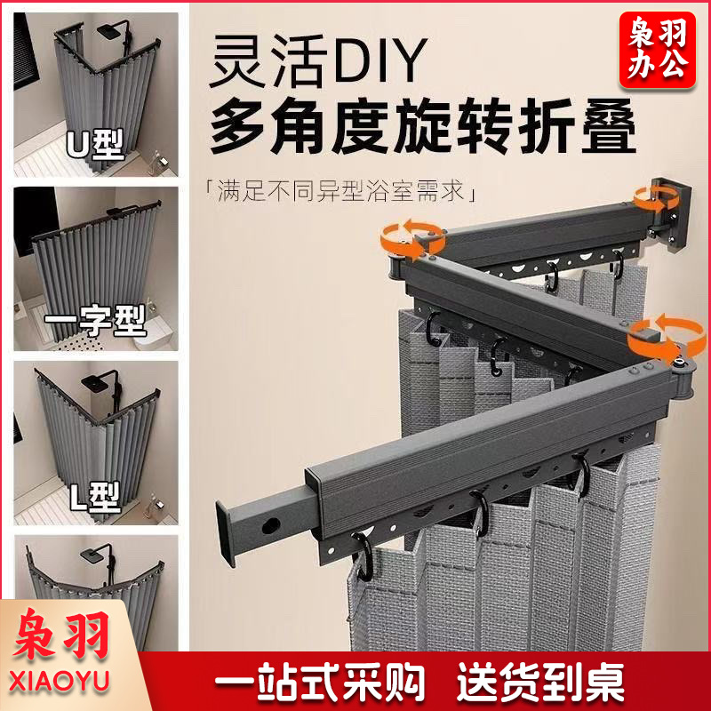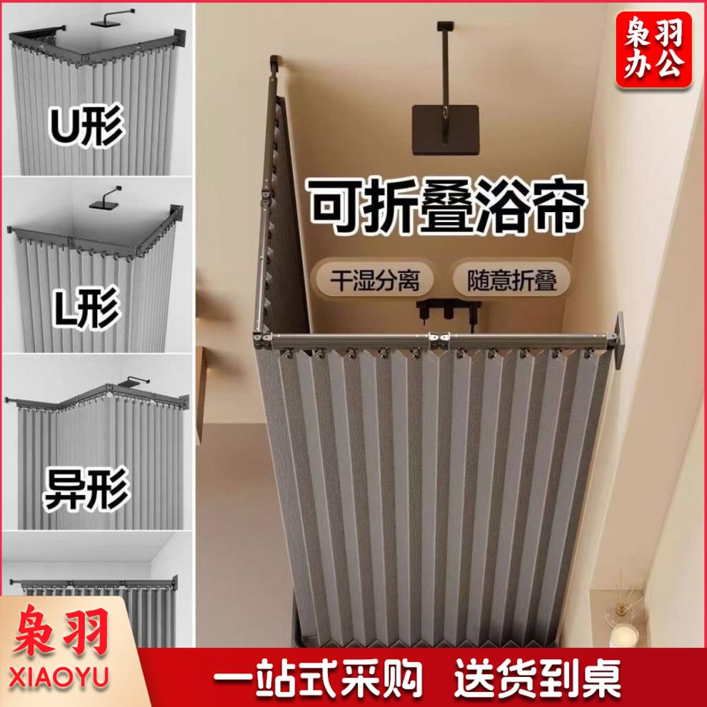 窗帘(帘100宽180高)可叠式杆浴帘套装隐形浴室隔断防水卫生间打孔高档干湿淋浴分离窗帘