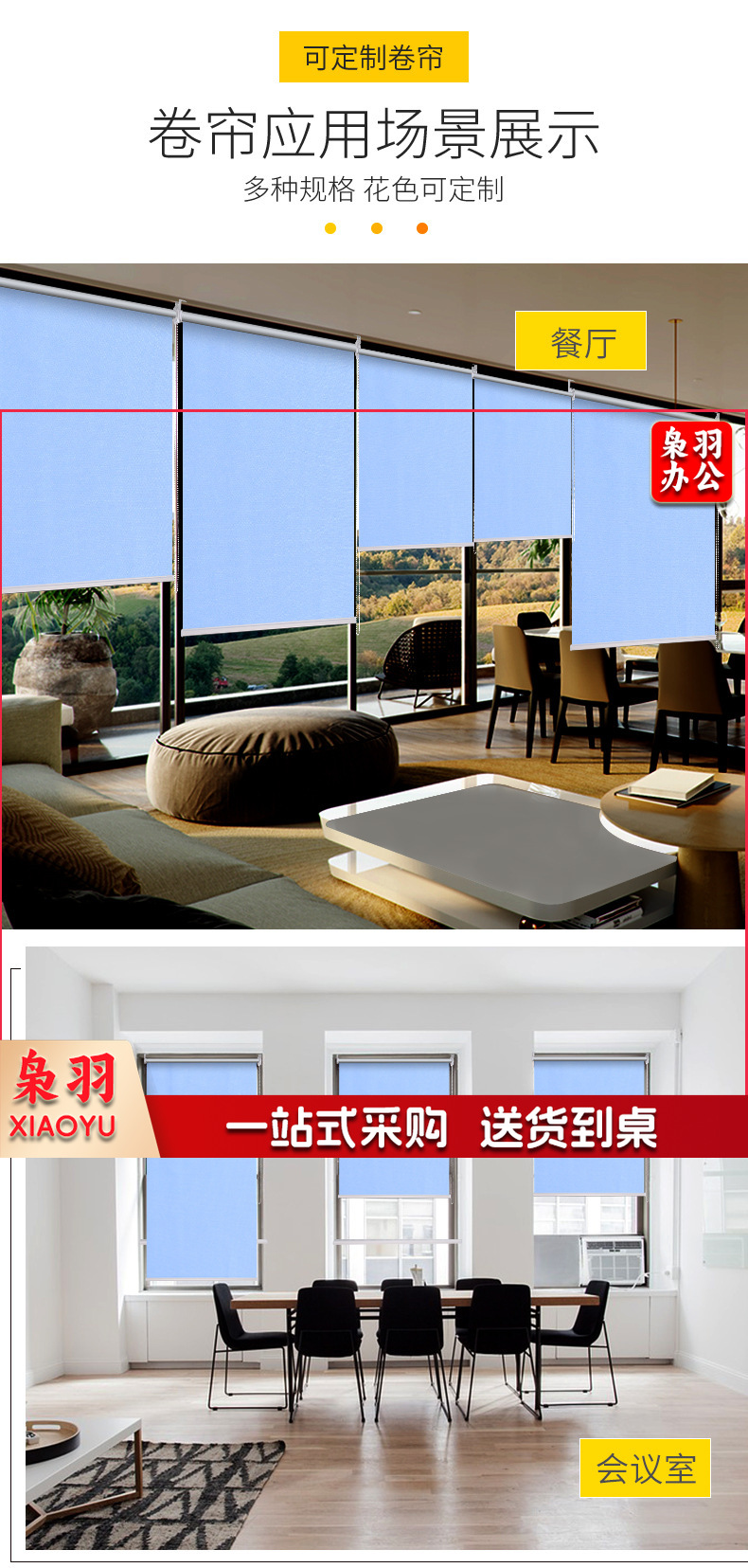 窗帘纯色卷帘办公室隔热帘遮阳帘升降窗帘logo图案遮光卷帘(定制尺寸)