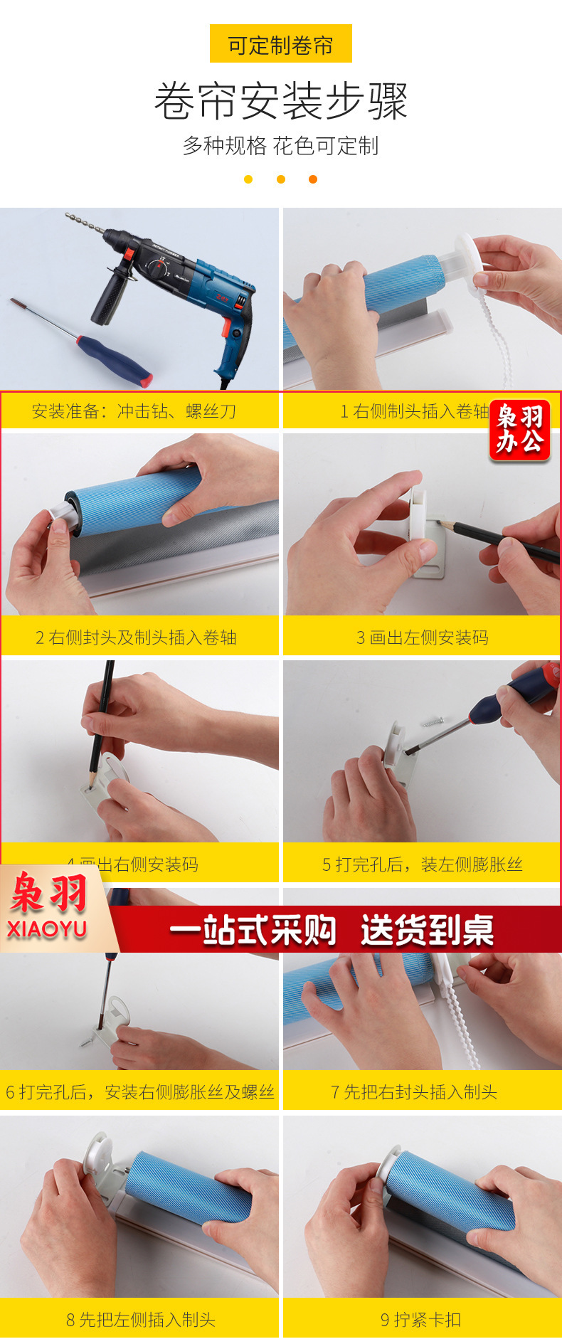 窗帘纯色卷帘办公室隔热帘遮阳帘升降窗帘logo图案遮光卷帘(定制尺寸)