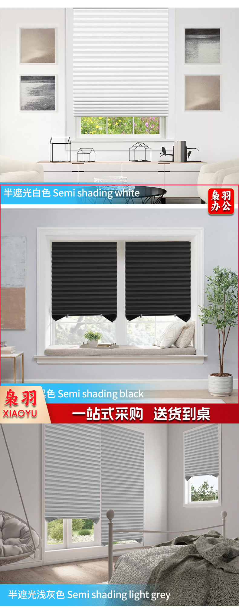 遮阳窗帘简易无纺布百褶帘百折帘免打孔胶粘折叠半全遮光百叶窗帘(定制尺寸)