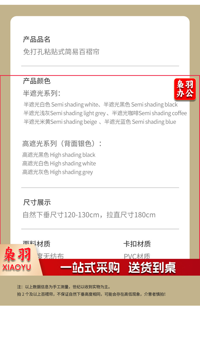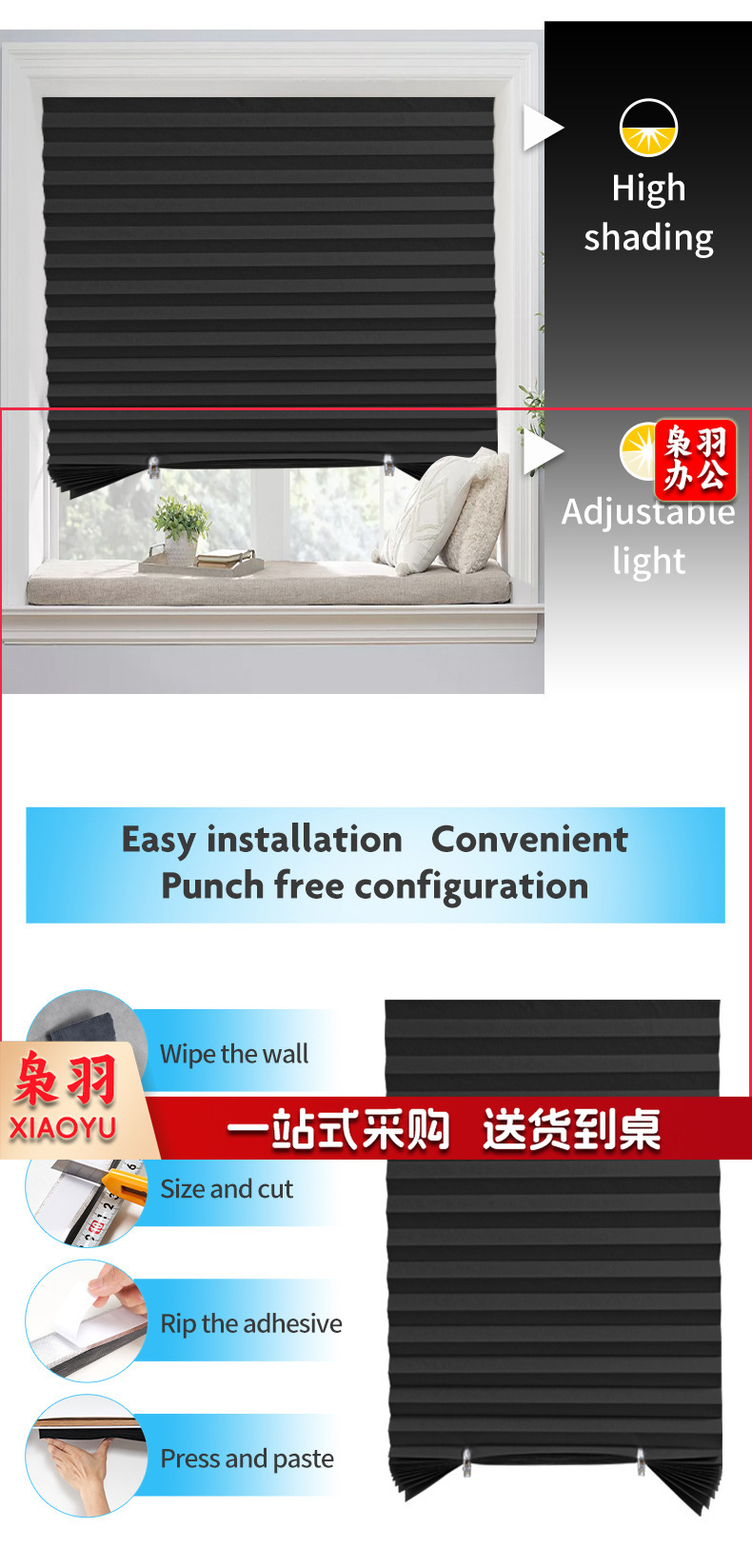 遮阳窗帘简易无纺布百褶帘百折帘免打孔胶粘折叠半全遮光百叶窗帘(定制尺寸)
