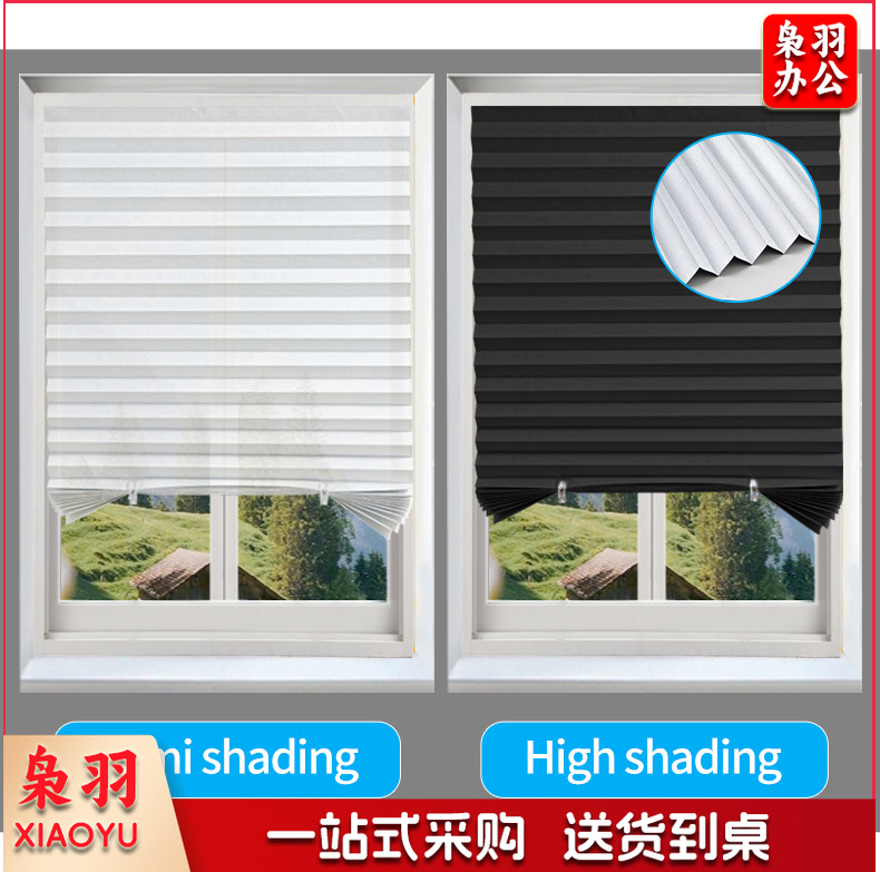 遮阳窗帘简易无纺布百褶帘百折帘免打孔胶粘折叠半全遮光百叶窗帘(定制尺寸)